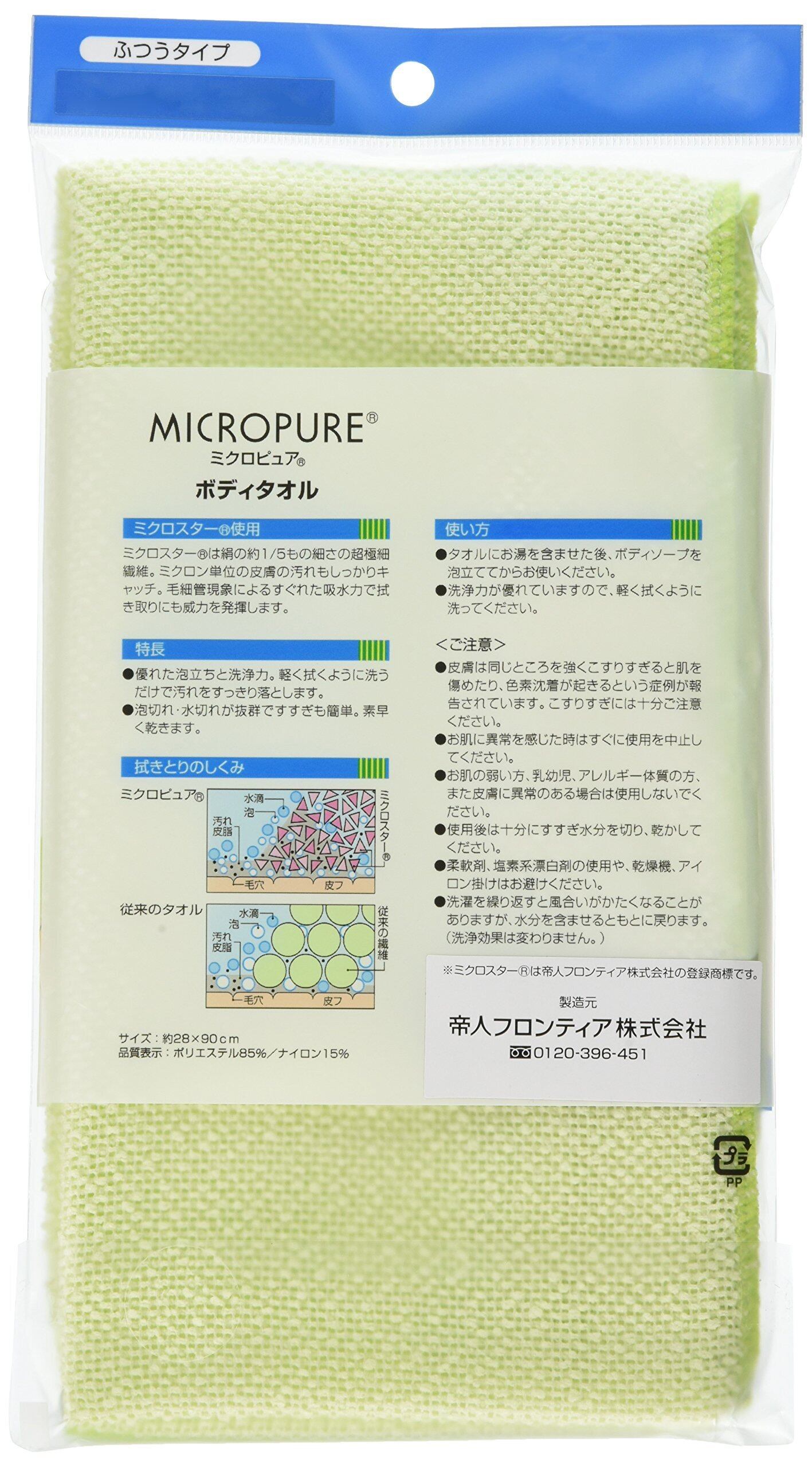 テイジン ボディタオル ミクロピュア 日本製 吸水 速乾 マイクロファイバー お風呂 泡立ち (グリーン, ふつうタイプ)