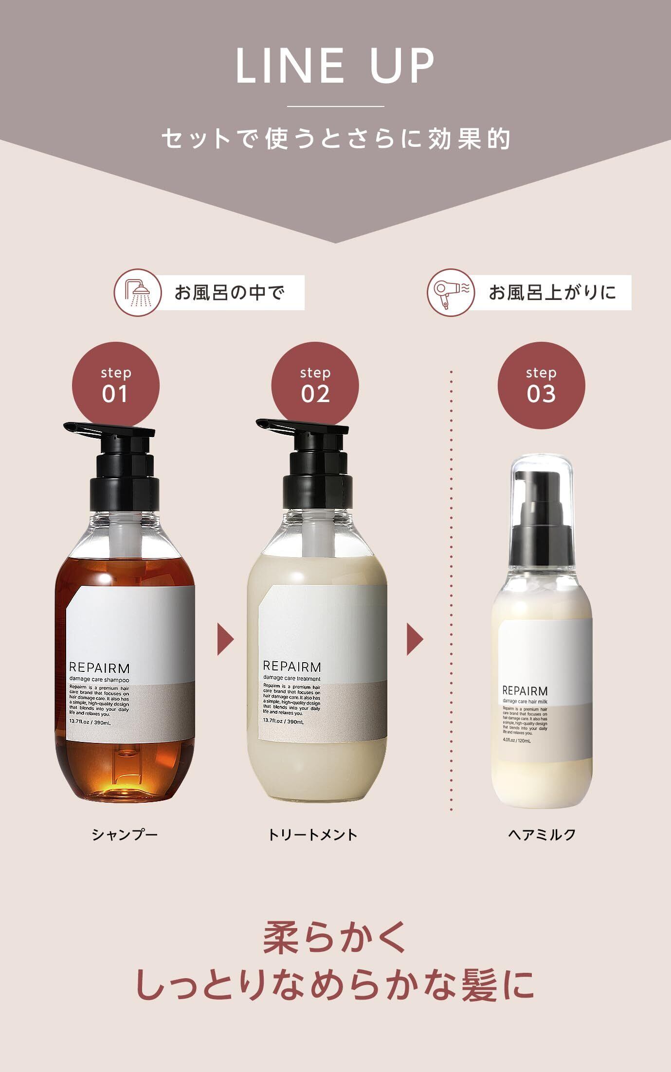 REPAIRM ヘアミルク 洗い流さないトリートメント 【11種類のたんぱく質配合ダメージ補修×しっとりなめらか髪へ×アップルペアーの香り×120ml】