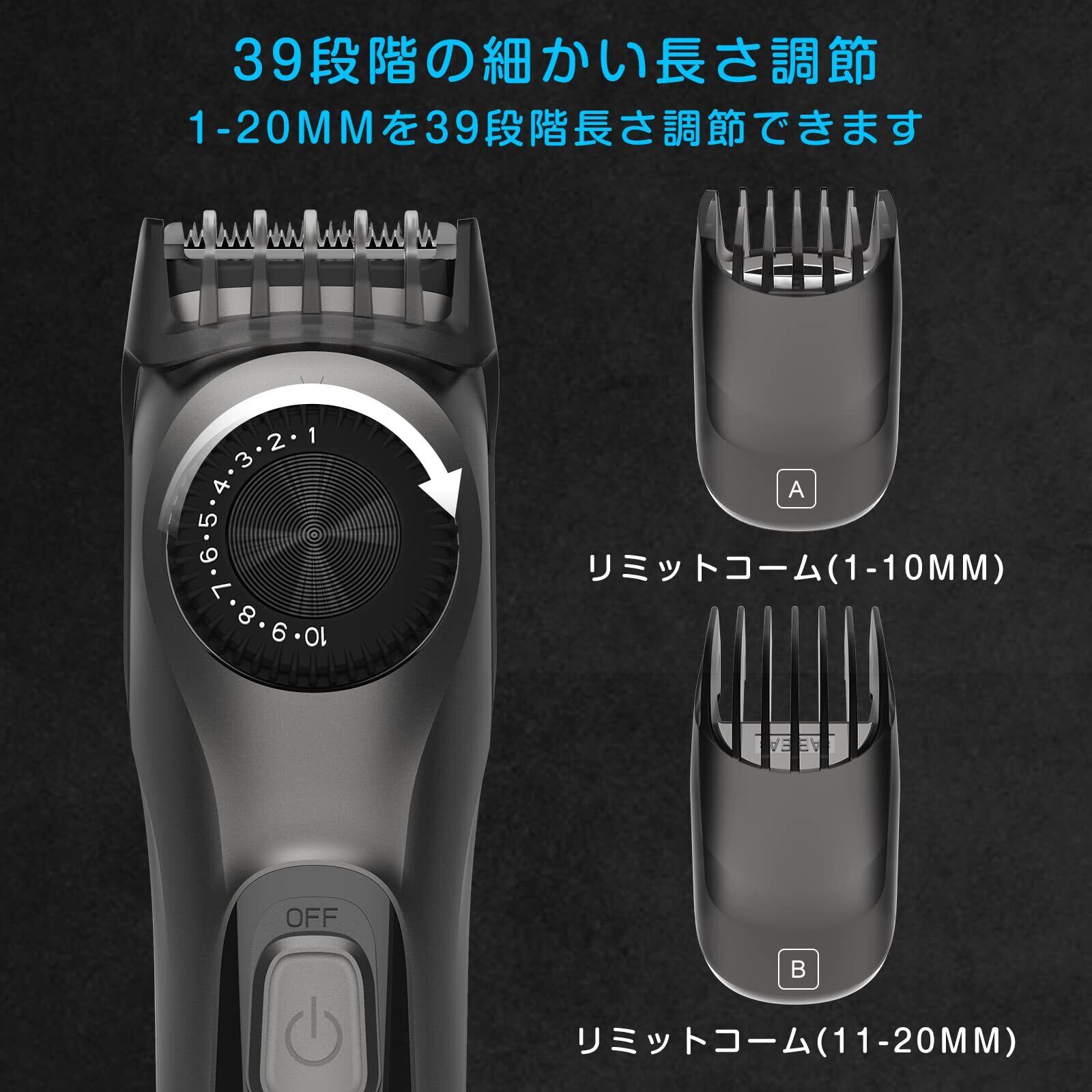 ダイヤル操作により0.5mm単位で、39段階の長さ調節で自由自在にヒゲを整えることができます。
