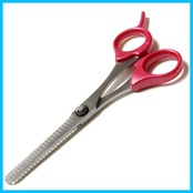 全体のボリュームを軽くソフトに仕上げます。 カット率約50%。 刃先は髪が逃げず切りやすい「V字カット」仕様。