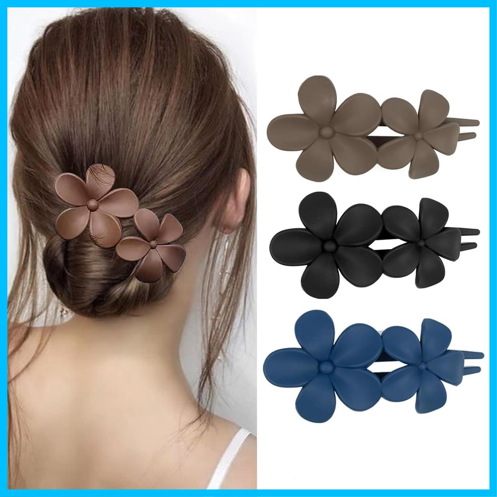 AUTAKI ヘアクリップ 3個セット 花形ヘアクリップ 髪留め マット 花モチーフ ヘアクリップ しっかりとまる 髪留め クリップ 大きめ レディース ヘアアクセサリー シンプル おしゃれ 韓国風 可愛い エレガント ヘアアクセサリー 普段使い 職場 仕事 通勤 女性用 (ブラック+コーヒー+ブルー) | グランメゾンショップ