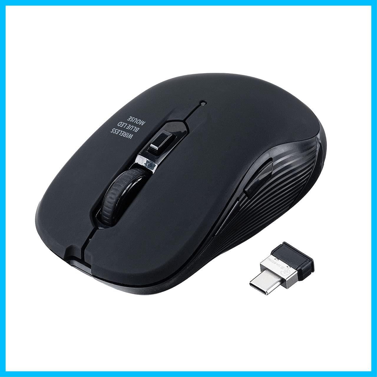 サンワダイレクト ワイヤレスマウス type-c 無線マウス 5ボタン (戻る/進むボタン搭載) ブルーLED iPad Pro/Mac/Win/Android対応 dpi切替 400-MAWC097BK