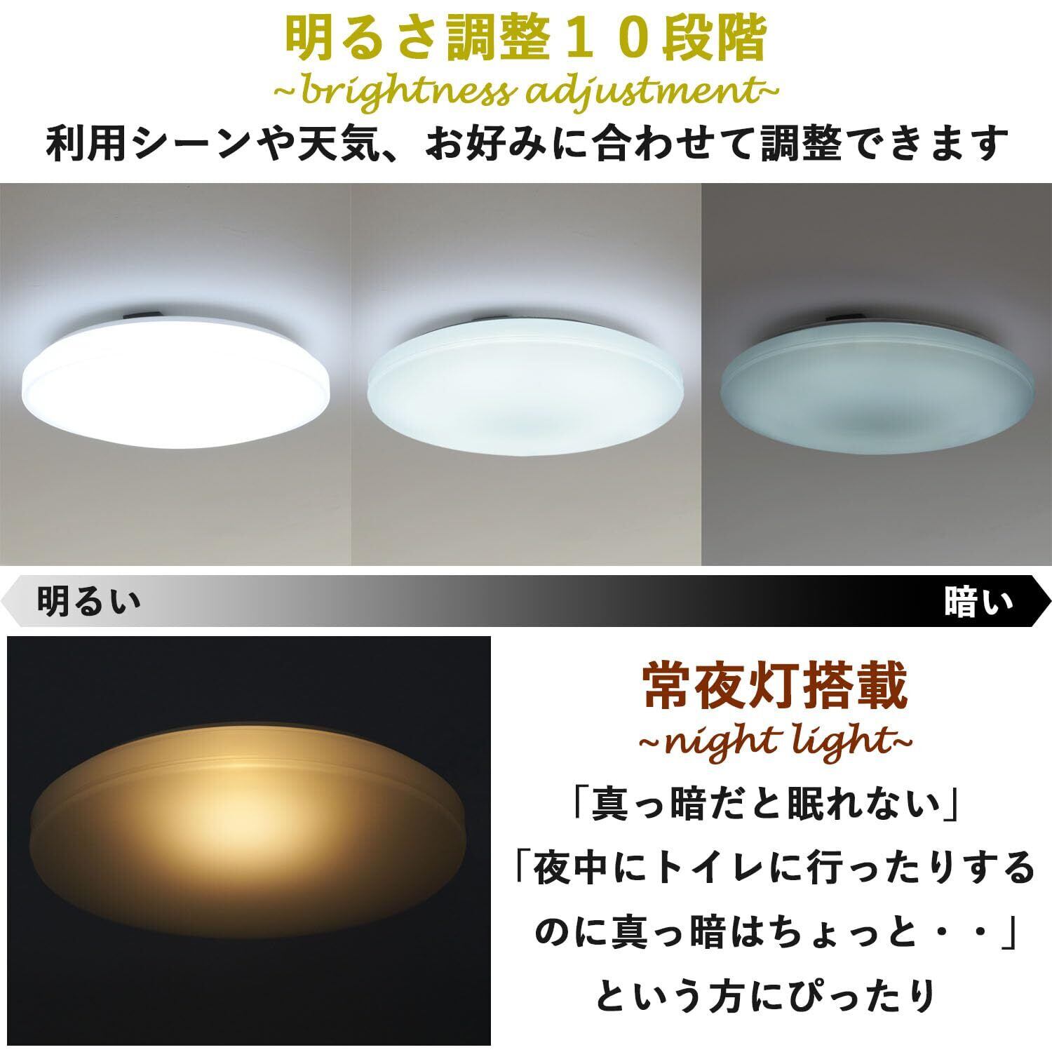 [山善] LEDシーリングライト 8畳 (日本照明工業会基準) 4100lm 室内/天井照明 10段階調光タイプ 常夜灯 リモコン付き 和室 リビング 寝室 メモリ機能 OFFタイマー (30分/60分) LC-G08