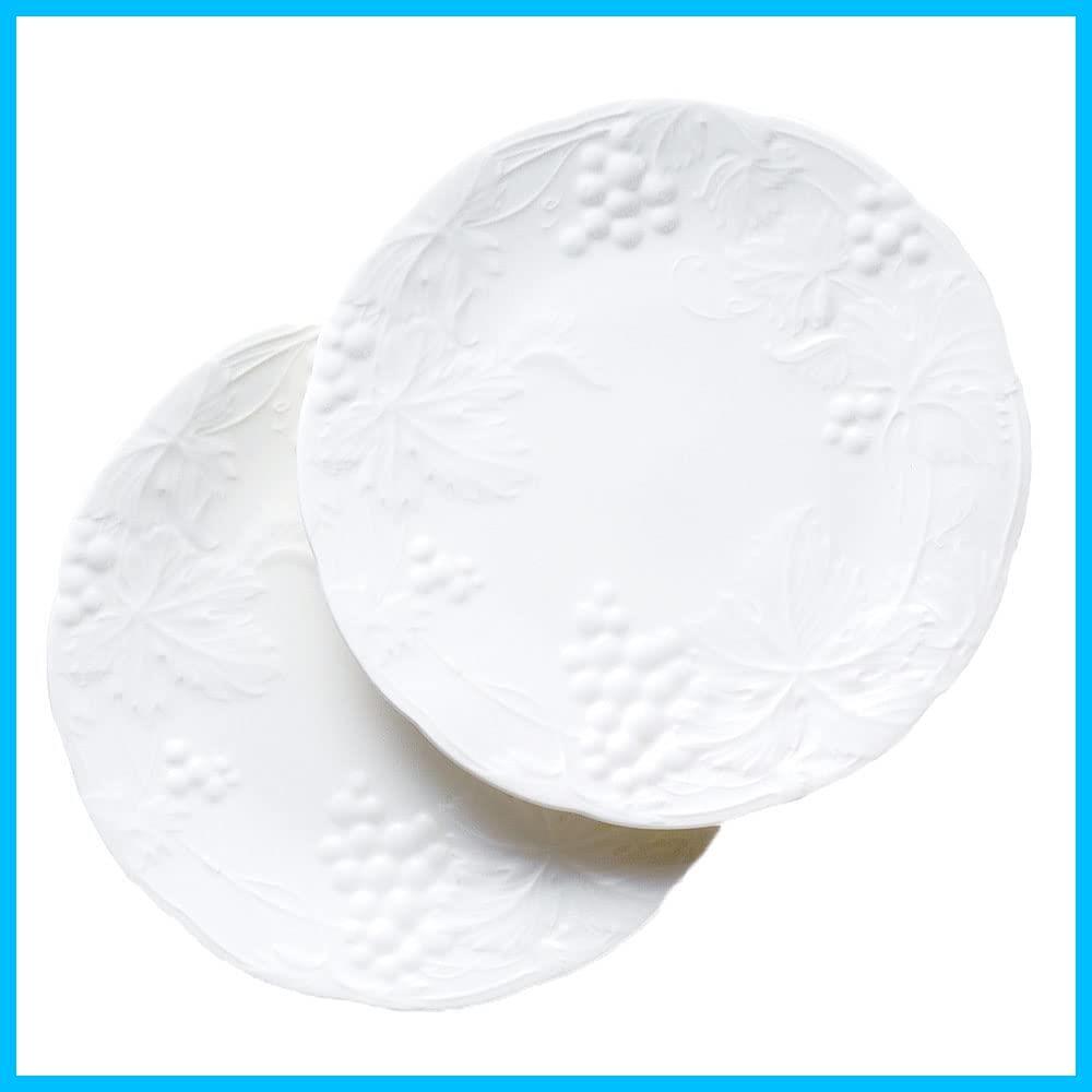 NARUMI(ナルミ) プレート 皿 セット ギフトギャラリー 27cm ホワイト ブドウ柄 かわいい レリーフ 2枚セット 電子レンジ温め 食洗機対応 日本製 ギフト箱入り 1023-23369