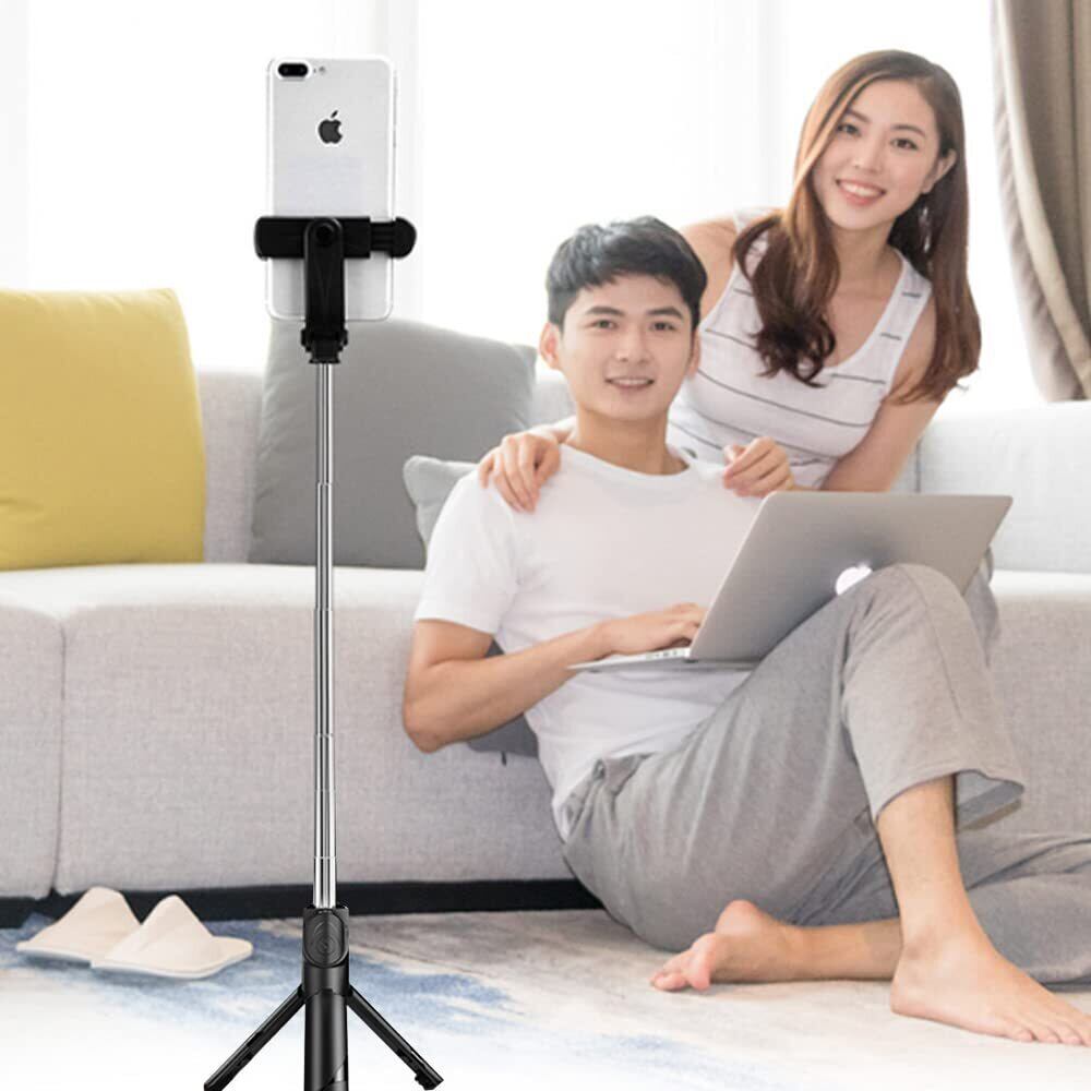 自撮り棒 三脚 Bluetooth セルカ棒 軽量 リモコン付き GoPro 三脚 スマホミニ三脚5段階伸縮 360°回転 遠隔撮影 無線 折りたたみ コンパクト 持ち運び便利 iPhone/Androidなどスマホカメラに対応(ブラック)