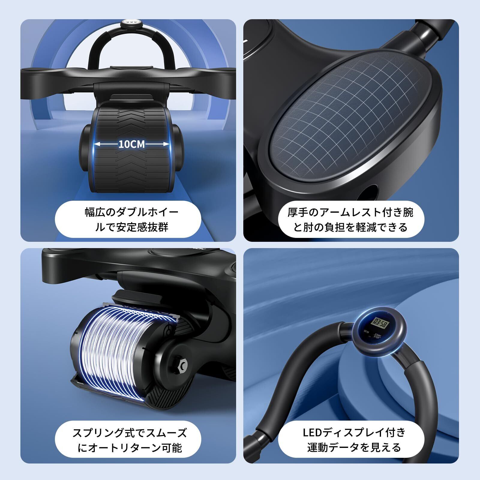 MERACH (メリック) 腹筋ローラー 膝マット付き プロ 腹筋 ローラー 静音 二輪 高耐久性 組立簡単 トレーニング器具 エクササイズローラー トレーニング エクササイズ ストレッチ ダイエット 筋トレ 器具 男性/女性 初心者/上級者 | グランメゾンショップ