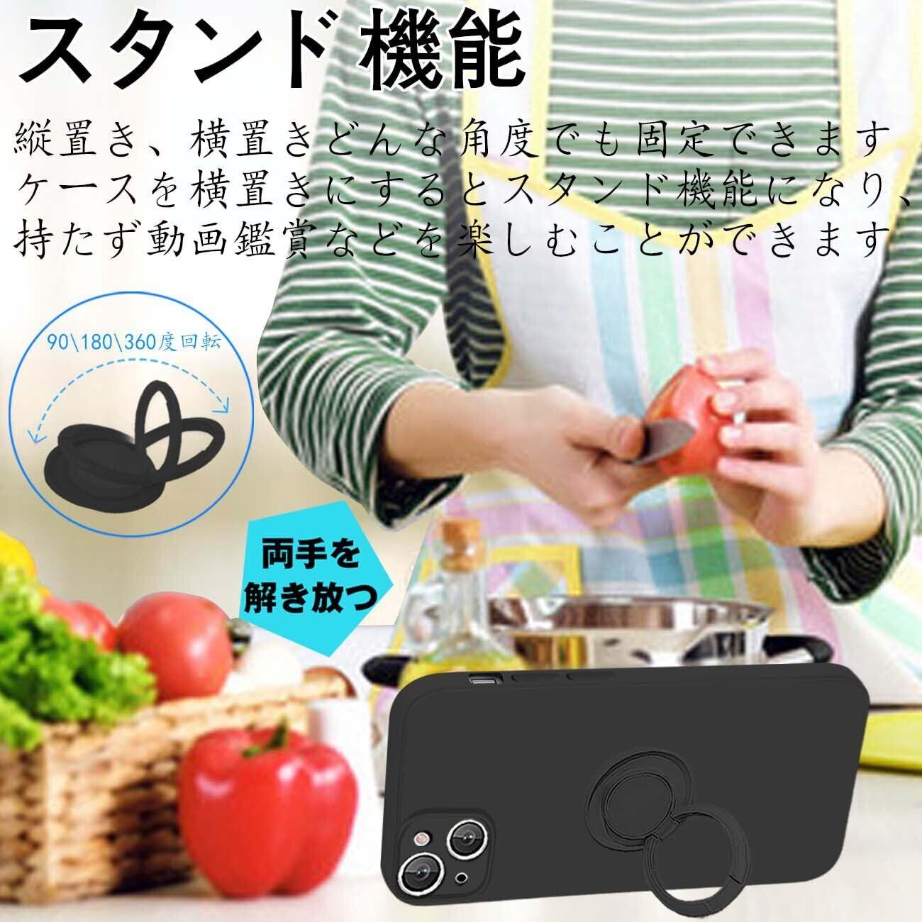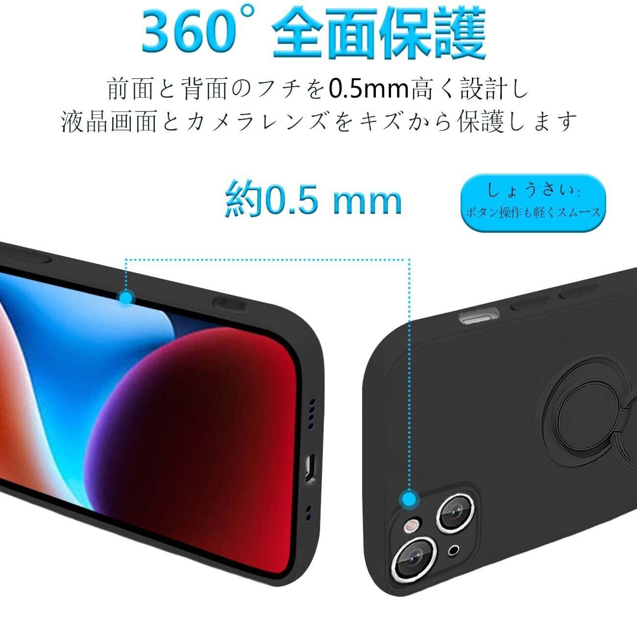 MiaoKeDa iPhone 13 mini ケース シリコーン リング 耐衝撃 スマホケース いpほね 13 mini リング付き TPU 車載ホルダー ストラップホール付き メッキ ブラック