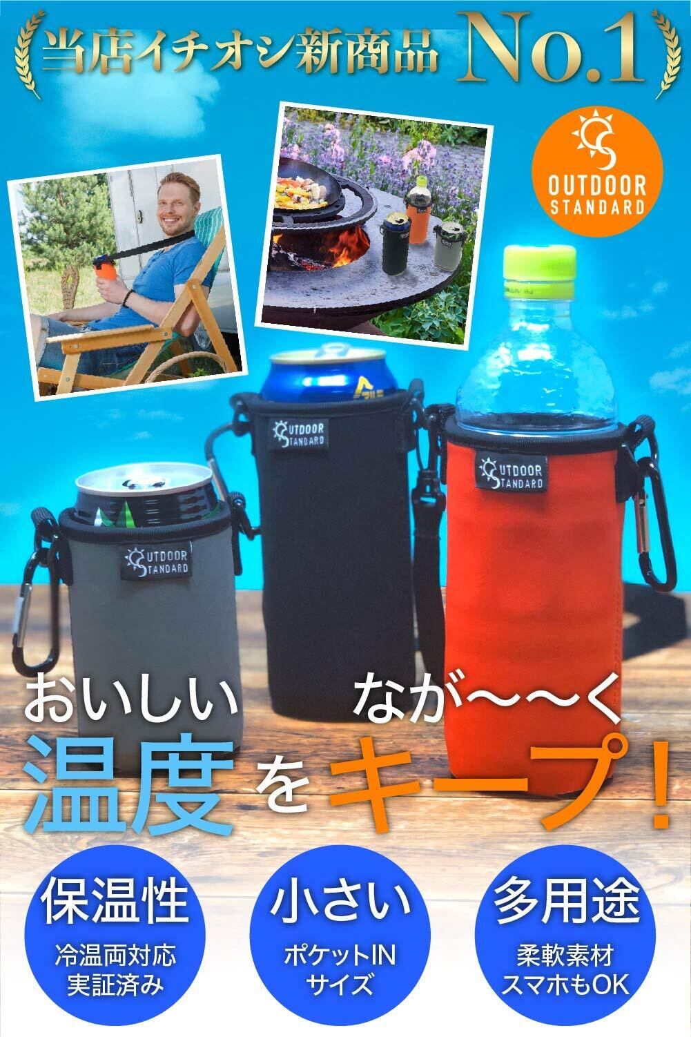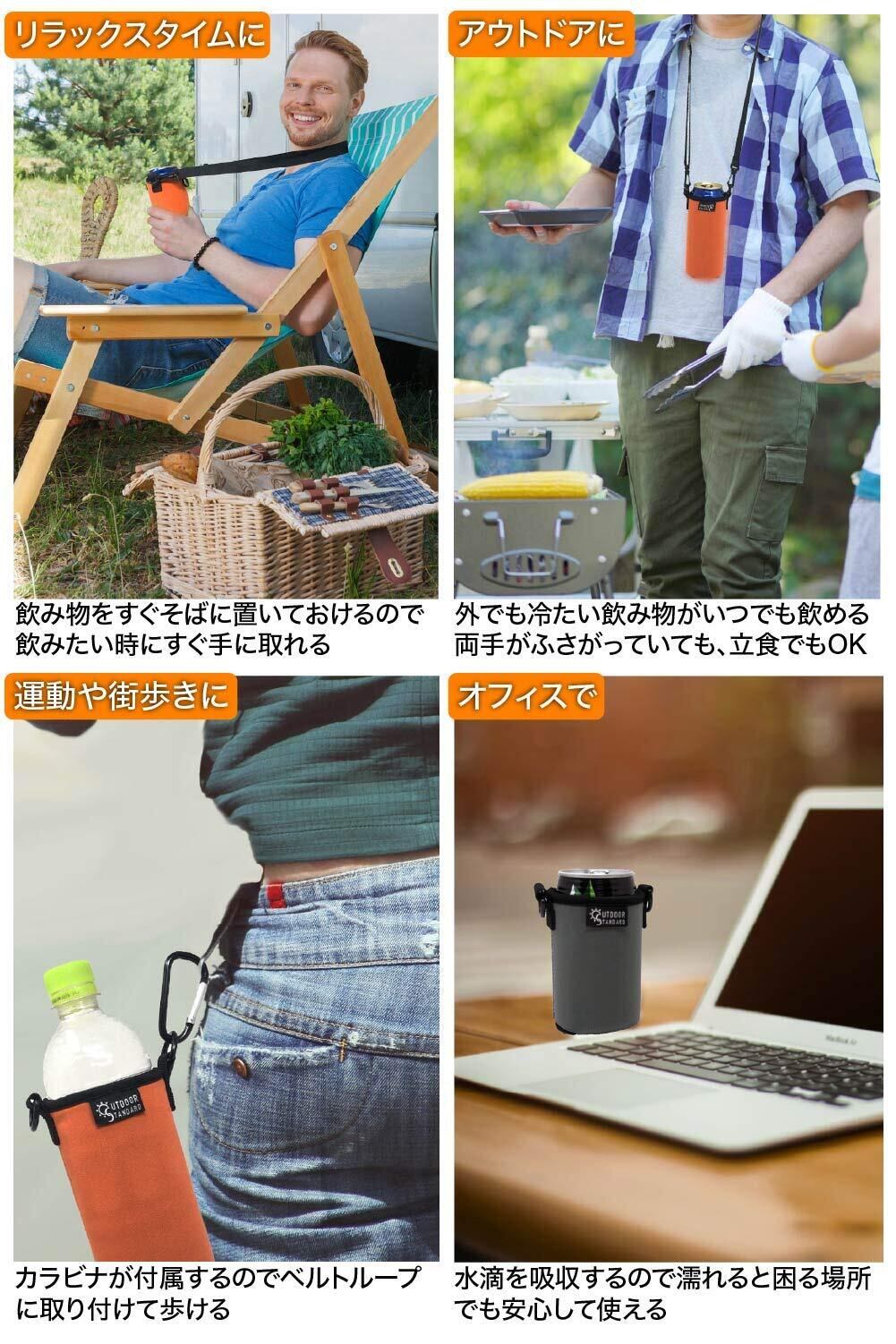 OUTDOORSTANDARD 缶ホルダー ペットボトルホルダー スマホホルダー キャンプ用品 アウトドア 保温 保冷 ネオプレーン (グレー, 350ml缶用)