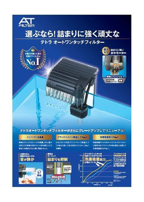 ●取付けがワンタッチで簡単。●コンセントを入れるだけの簡単スタートで呼び水不要。●水中モーター採用で静かな運転音。●テトラ バイオバッグ付で強力ろ過。