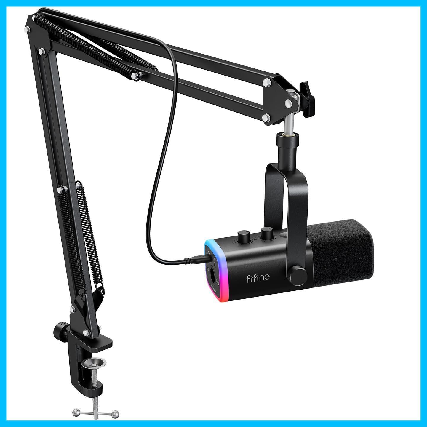FIFINE XLR/USB ゲーミングマイクセット ストリーミング ポッドキャスト用 ダイナミックマイク PCマイク ブームアームスタンド付き RGB機能付き ミュートボタン ヘッドフォンジャック ボーカル ボイスチャット 録音 配信 実況 ゲーム 黒 AmpliGame AM8T | グランメゾンショップ