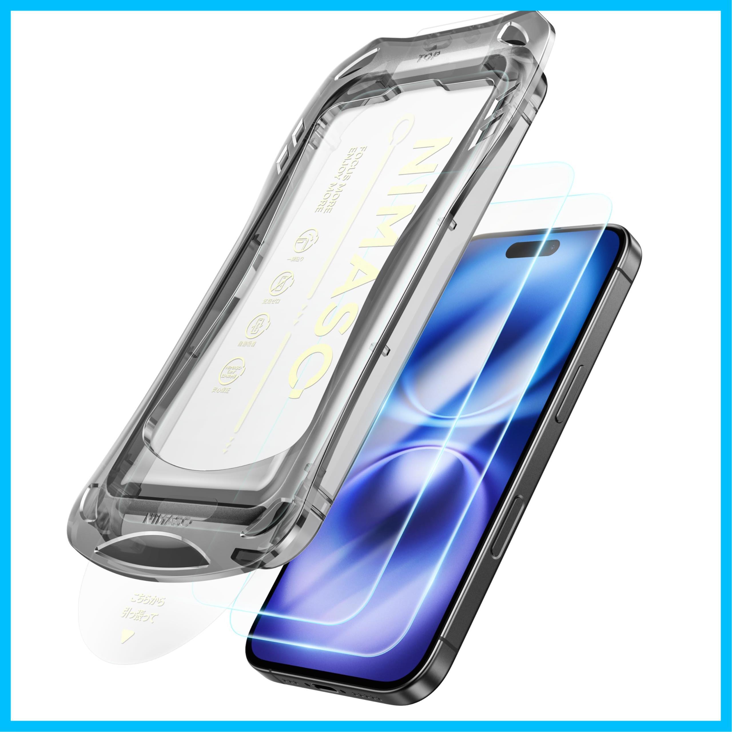 NIMASO ガラスフィルム iPhone 16 / iPhone 15 用 強化ガラス 自動除塵 保護フィルム 超簡単貼り付け 耐衝撃 指紋防止 ガイド枠付き 2枚セット アイフォン16 / アイフォン15 対応(6.1インチ) DSP24G1351 | グランメゾンショップ