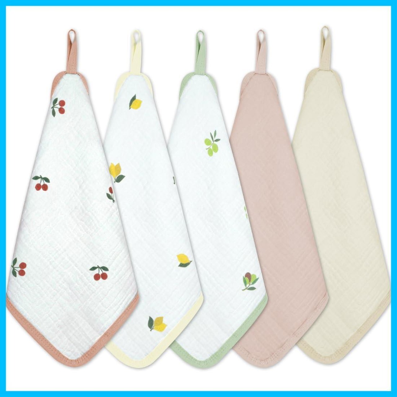 (ケラッタ) イブル 抗菌バンブー ループ付きタオル ガーゼ ハンカチ 5枚組 保育園 幼稚園 おなまえネーム付き 保育園 女の子 男の子 25×25cm (a. フルーツset) | グランメゾンショップ