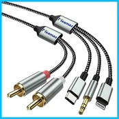 【Meamaz MFi 認証】ライトニング USB-C 3.5mm~RCA コンバータオーディオケーブル内蔵 DAC チップ付き、3-in-1 2 オス RCA、iOS 及び Android 携帯電話、家庭用シアター、ミキサー、プロジェクター、アンプ、DVD 向け 4.26FT/1.3M