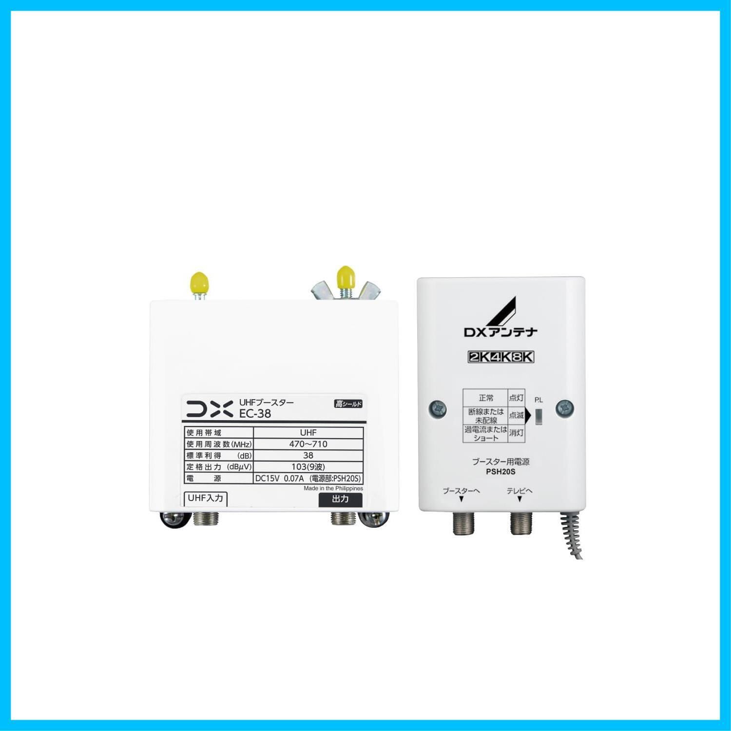 DXアンテナ ブースター 増幅器 UHF テレビ 38dB 家庭用 ケーブルの加工・接続状態の確認機能付 EC-38