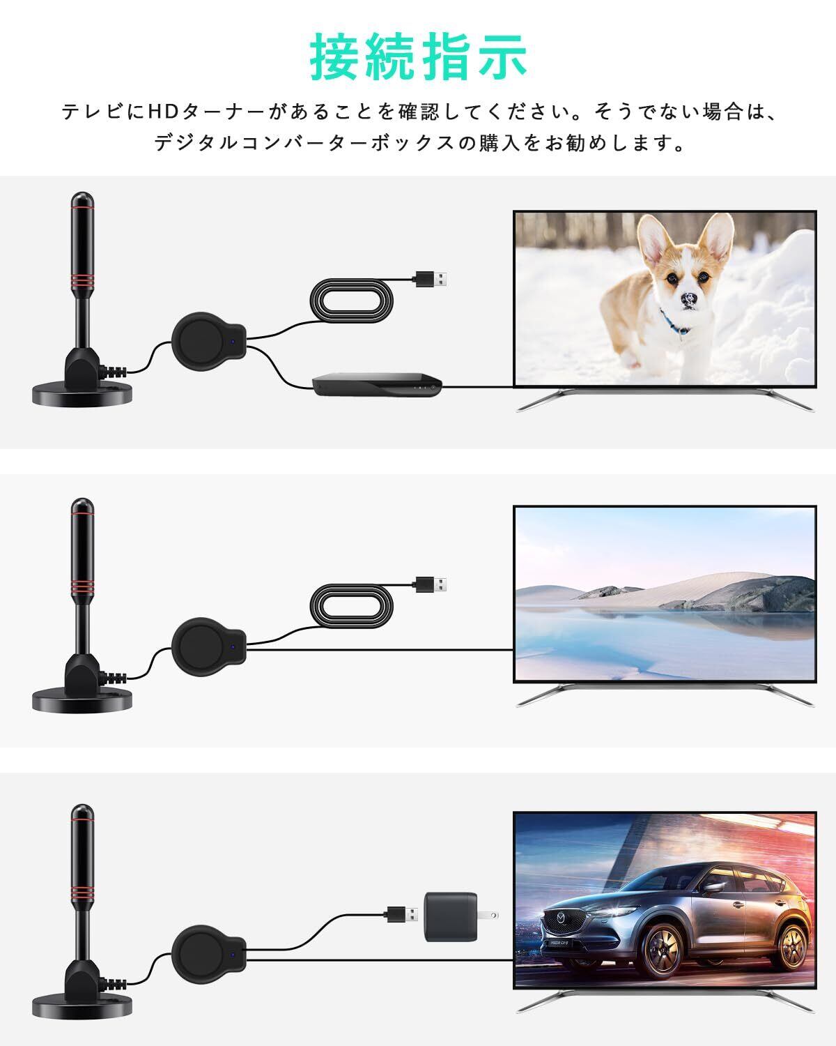 同軸ケーブルおよびUSB電源アダプター:高感度受信アンテナ、ブースターアンテナ、TVブースター、4.4M同軸ケーブルを使用しているため、他社製品よりも受信強度が高く、そのため、出力画像がより鮮明になります。長いケーブルはあなたの家の最もよい受信場所にアンテナを置くことを容易にします。アンテナは、コンセントまたはテレビのUSBポートのいずれかから電力を供給できます。過電圧保護機能が組み込まれたSmartIC USB電源アダプタは、DTVアンテナを電源に接続するためのUSB出力がテレビにない場合に役立ちます。