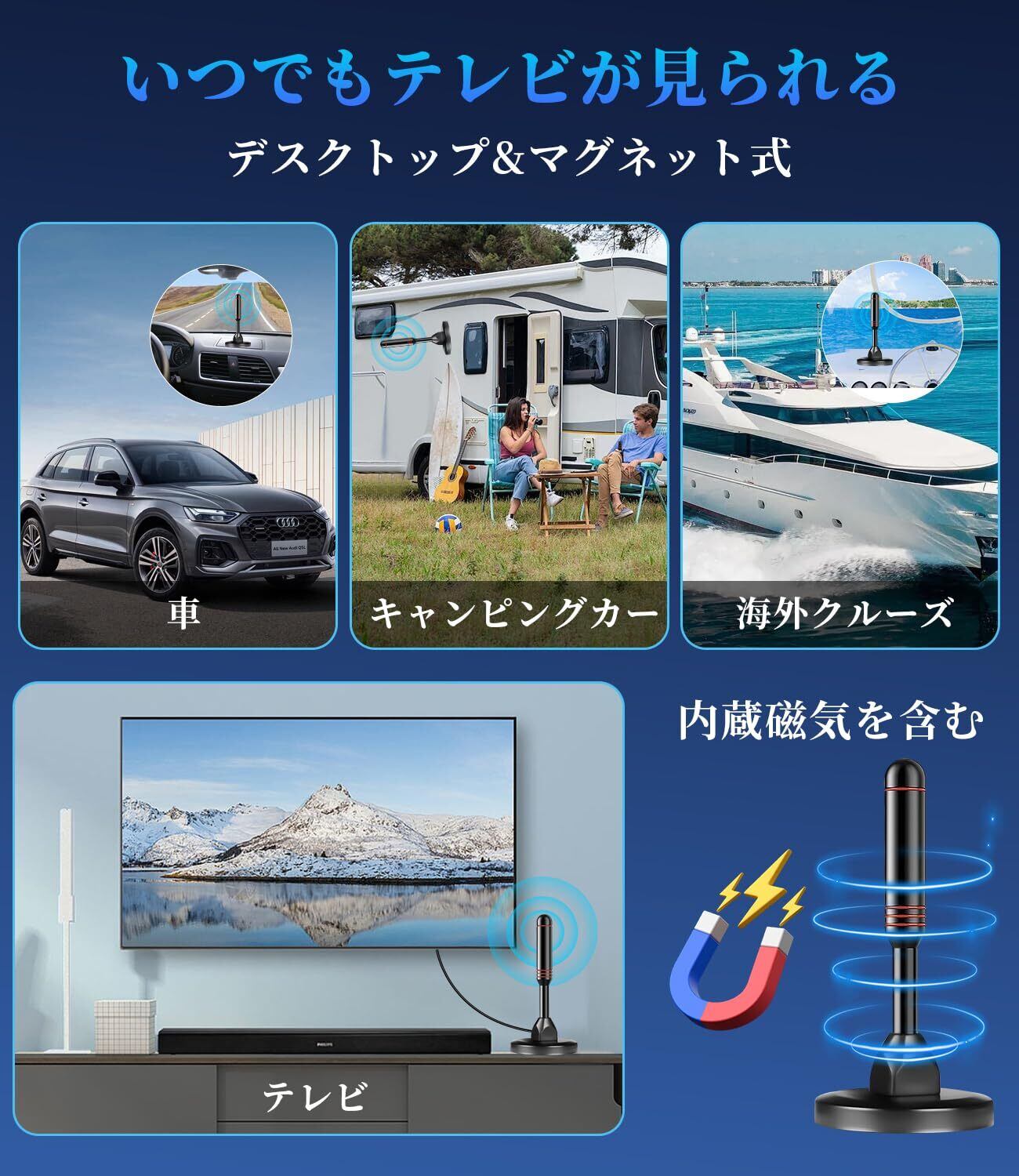 室内アンテナ テレビアンテナ【2025強化版 室内アンテナ 】地デジ 最強 テレビアンテナ 500KM受信範囲 360度全方位受信 VHF/UHF兼用 USB式 内蔵5m 高性能 高感度 強・中・弱電界地域用 磁力固定 薄型&小型 車載 信号増幅器 全種類 UHF VHF 対応