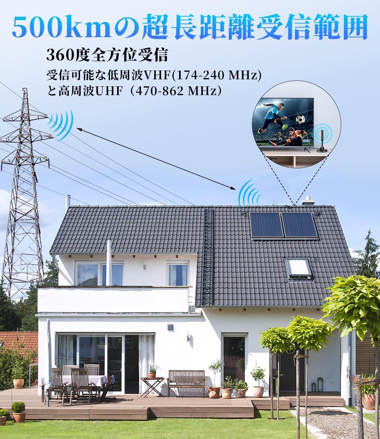 500KM受信範囲 360度全方位受信 4K アンテナ VHF/UHF兼用 HDTV ハイビジョンチャンネル 内蔵5m USB式