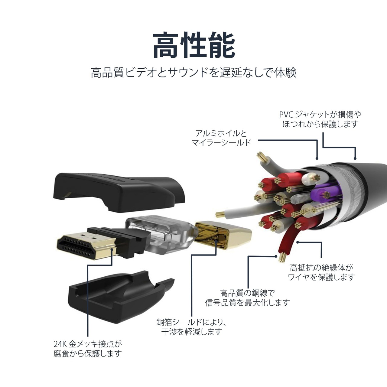 HDMI(タイプA)オス-HDMI(タイプA)オスケーブル: イーサネット、フルHD3D、4Kビデオ、オーディオリターンチャンネル (ARC) に対応