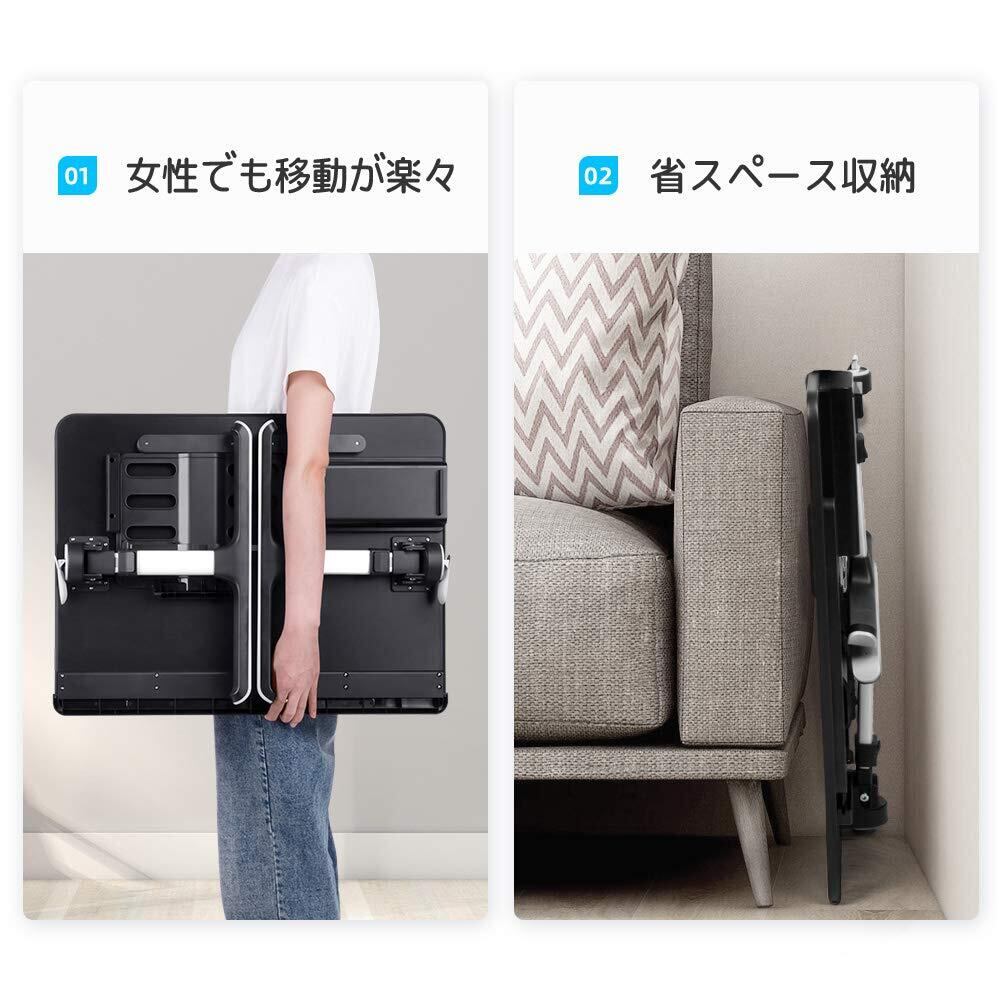 【高度・角度を自由調整】5段階の高さ(27~39cm)を調節できて、お子様から大人まで幅広く適用しています。 天板の下には充分なスペースが用意され、窮屈感なく快適に使用できます。4段階の角度(0~36°)もお好みに 合わせてご自由に調整していただけ、映画を見ながらベッドやソッファで快適に休日を過ごせます。