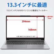プライバシー保護:正面からの視認性を保ちつつ、側面からの覗き見を防ぐことができます。約60度の視野角(左右30度)を越えると、画面が暗く表示されるため、新幹線やカフェで作業をしていても情報の漏洩リスクを回避することができます。対応サイズ:13.3インチ 縦横比 16:9 フィルター部分のみの寸法:294mm x 168mm