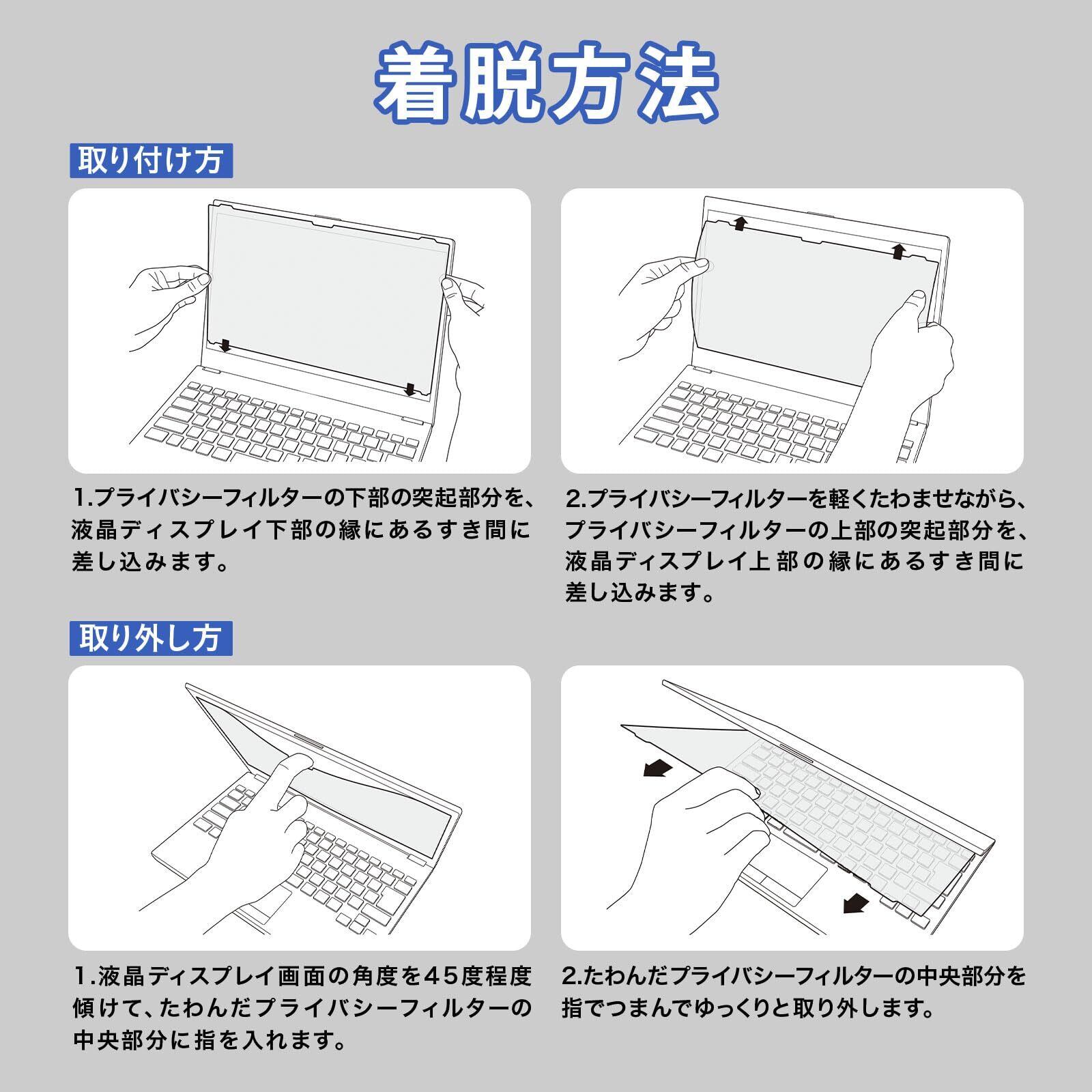 富士通 LIFEBOOK U9414/R U9413/N 用 プライバシーフィルター 覗き見防止 フィルター ブルーライトカット 保護フィルム 両面使用