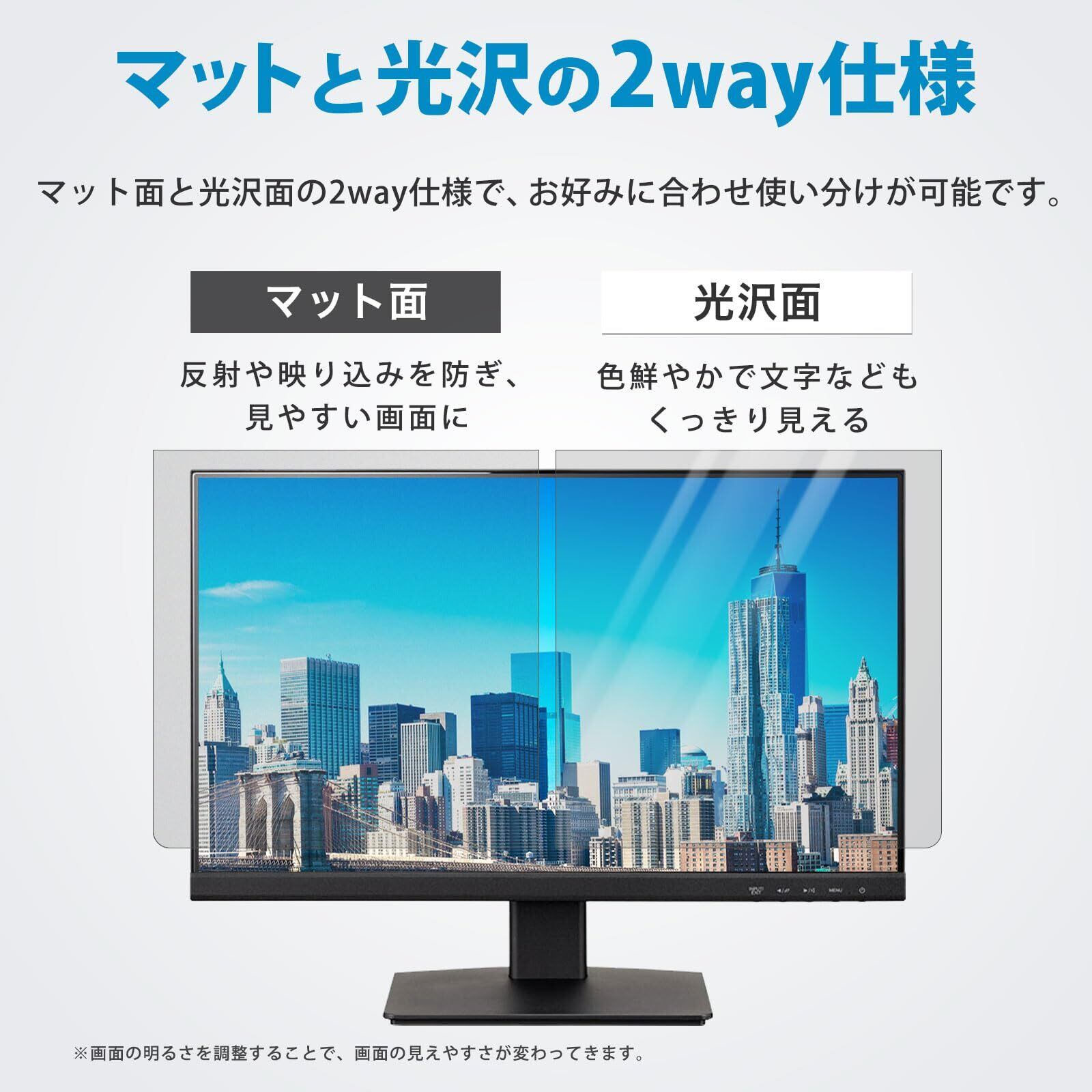 両面の使用が可能:一方の面はアンチグレア加工が施されているので、太陽光や蛍光灯からの反射を抑え、見やすさを向上させます。もう一方の面は光沢があるため、写真や動画の質感が高まり、鮮やかな画面を楽しむことができます。
