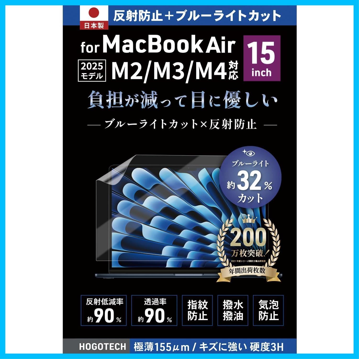 2025年 M4モデル対応【日本製】ブルーライトカット アンチグレア MacBook Air 15インチ 保護フィルム 2024 2023 A3114 A2941 反射防止 気泡防止 HOGOTECH
