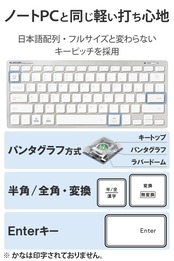 ■ 持ち運びに便利な最薄部が6.5mm、重さが264gの薄型・軽量Bluetooth(R)パンタグラフミニキーボードです。