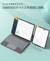 【JIS日本語配列マルチメディアキー搭載パンタグラフ式マルチペアリング機能搭載bluetooth5.2キーボード付き】 bluetooth キーボードはJIS日本語配列レイアウトを採用し、マルチメディアキーを搭載していて、音量調整やメディアプレーヤーの操作などがキーボードから手を離さずに簡単に操作できます。パンタグラフキータイプで、軽い力でタイピングでき、長時間の使用にも疲れません。 bluetoothキーボードは2台のiOSデバイスとペアリング可能で、fn+A/Sを押すだけで自由に切替。