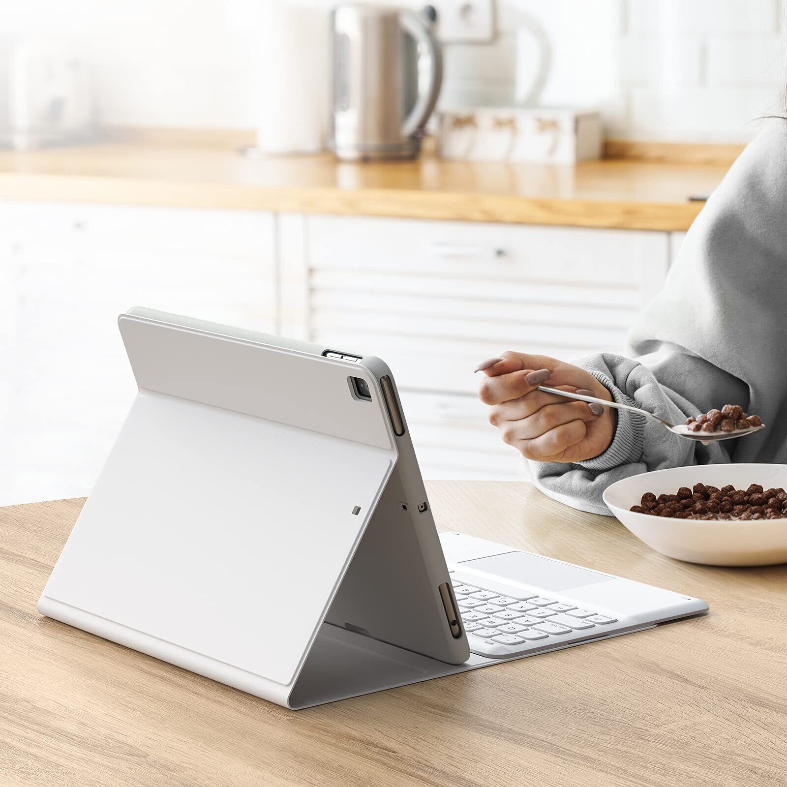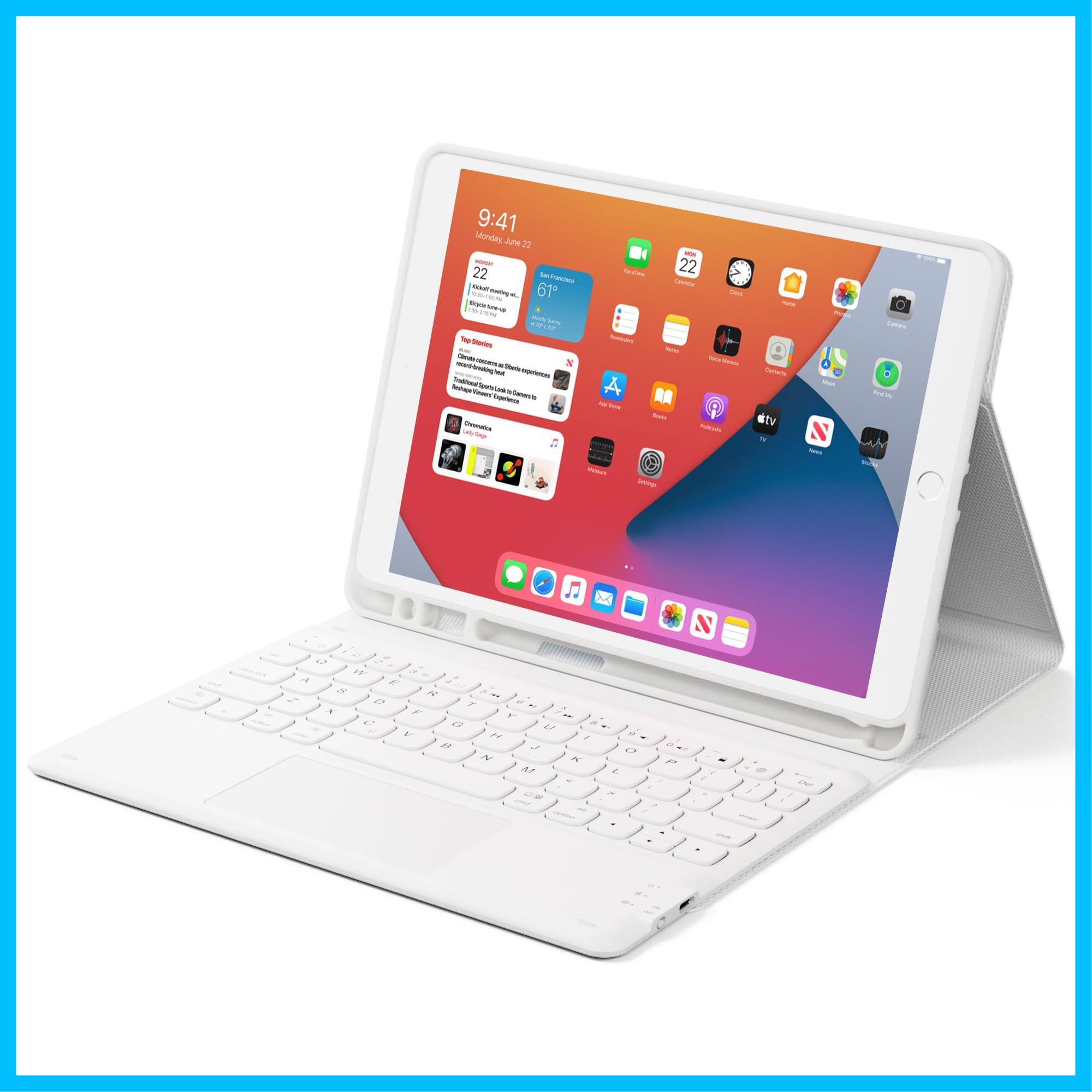 iPad 9世代 キーボード iPad 8世代 キーボード ケース タッチパッド付き ipad 10.2 キーボード ケースiPad7世代キーボード[2021/2020/2019モデル] BTキーボードカバー 脱着式 多角度調整 傷つけ防止 耐久性 [ペンシルホルダー付き] 最新型スマート ケースキーボード 丸いキー可愛いキー マグネット付きワイヤレスアイパッド10.2インチキーボードホワイト | グランメゾンショップ