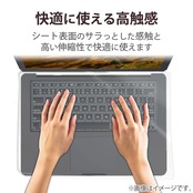 ■表面はサラッとした手触りで、やわらかく伸縮性がよいので、シートの上からでも違和感のない快適なキータッチを実現し、隣のキーへ干渉することもありません。