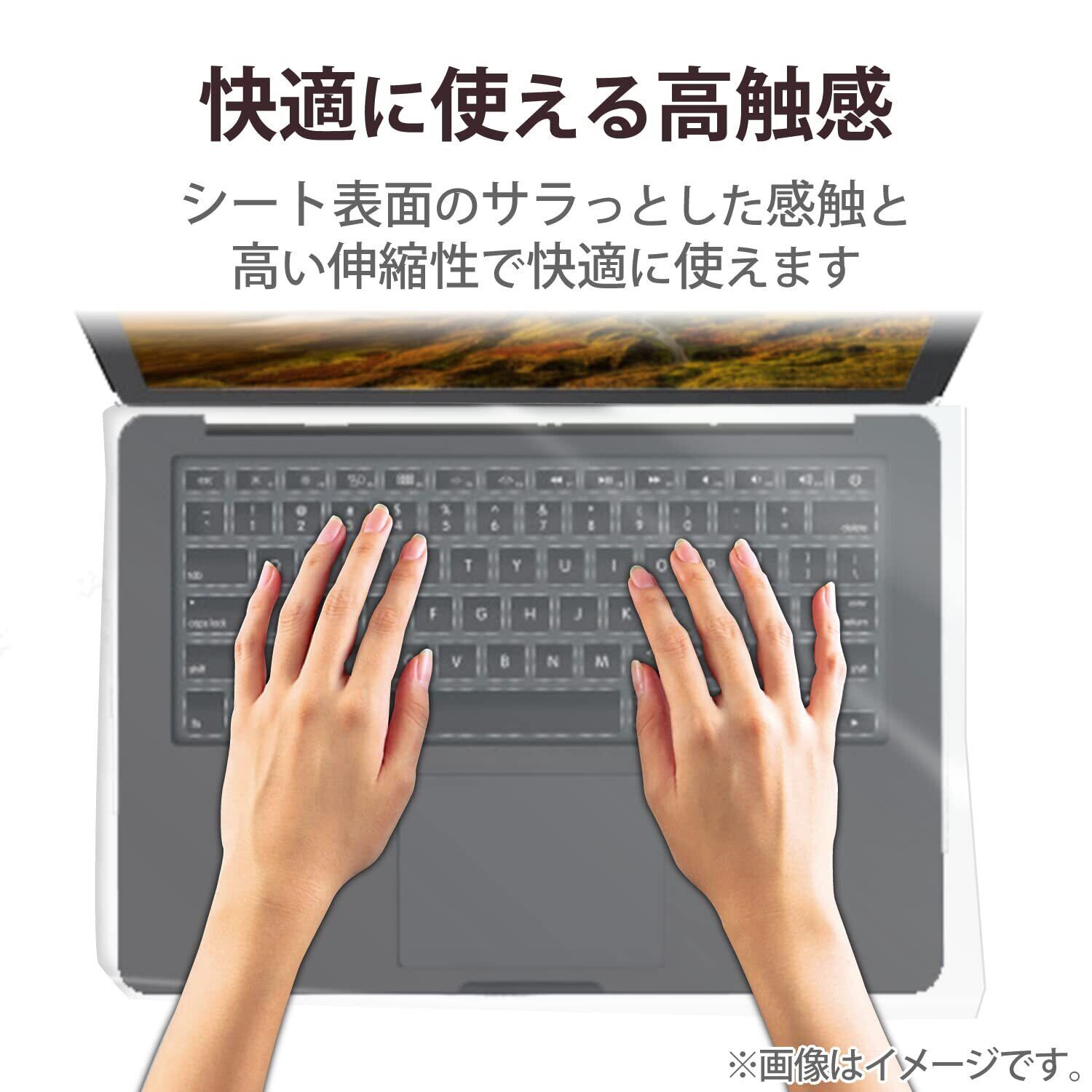 表面はサラッとした手触りで、やわらかく伸縮性がよいので、シートの上からでも違和感のない快適なキータッチを実現し、隣のキーへ干渉することもありません。