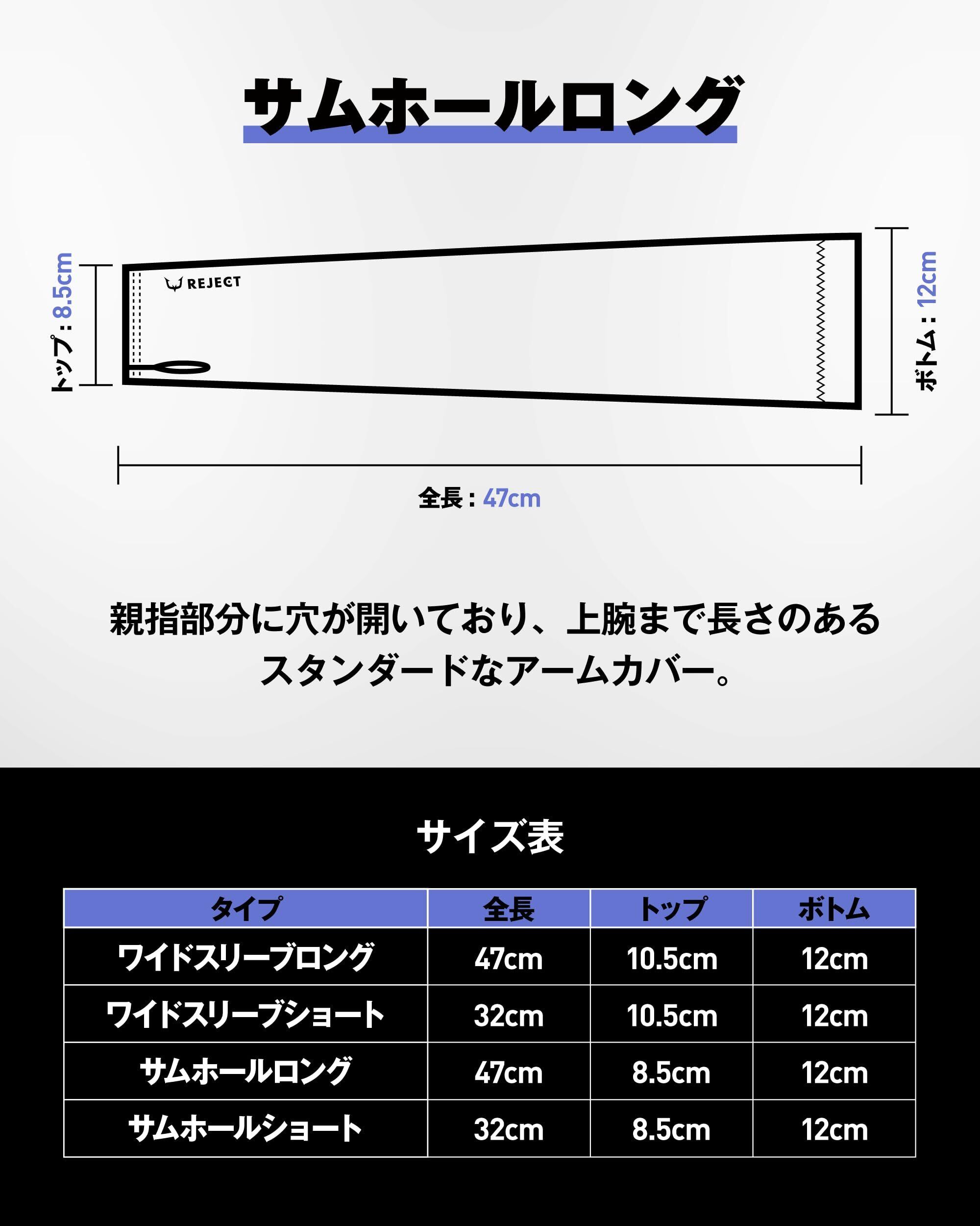 REJECT アームカバー ゲーミング サムホール ロング 1枚入 マウスパッド ガラス ゲーム ゲーミングアームカバー fps tps VALORANT Apex フォートナイト GAMING ARM SLEEVE - THUMB HOLE LONG | グランメゾンショップ