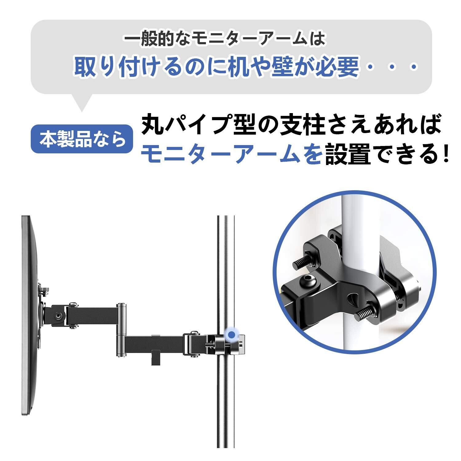 ACCURTEK モニターアーム ポール取り付け式 シングル (13~32インチ、最大8kg対応) - 1画面 角度調整可能 スチール製 ブラック ZJ35-01