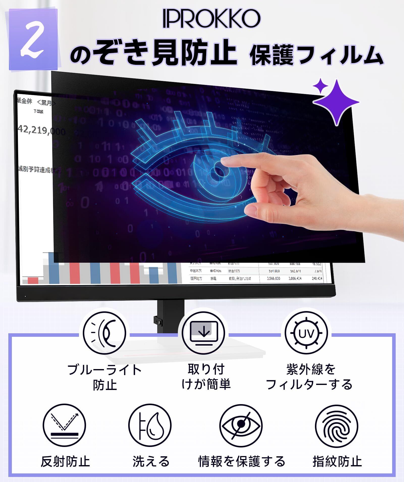 22インチ(16:10)PCモニター用のぞき見防止フィルター パソコン 覗き見防止 液晶保護フィルム ブルーライトカット 反射防止 取り外し可能フィルム IPROKKO