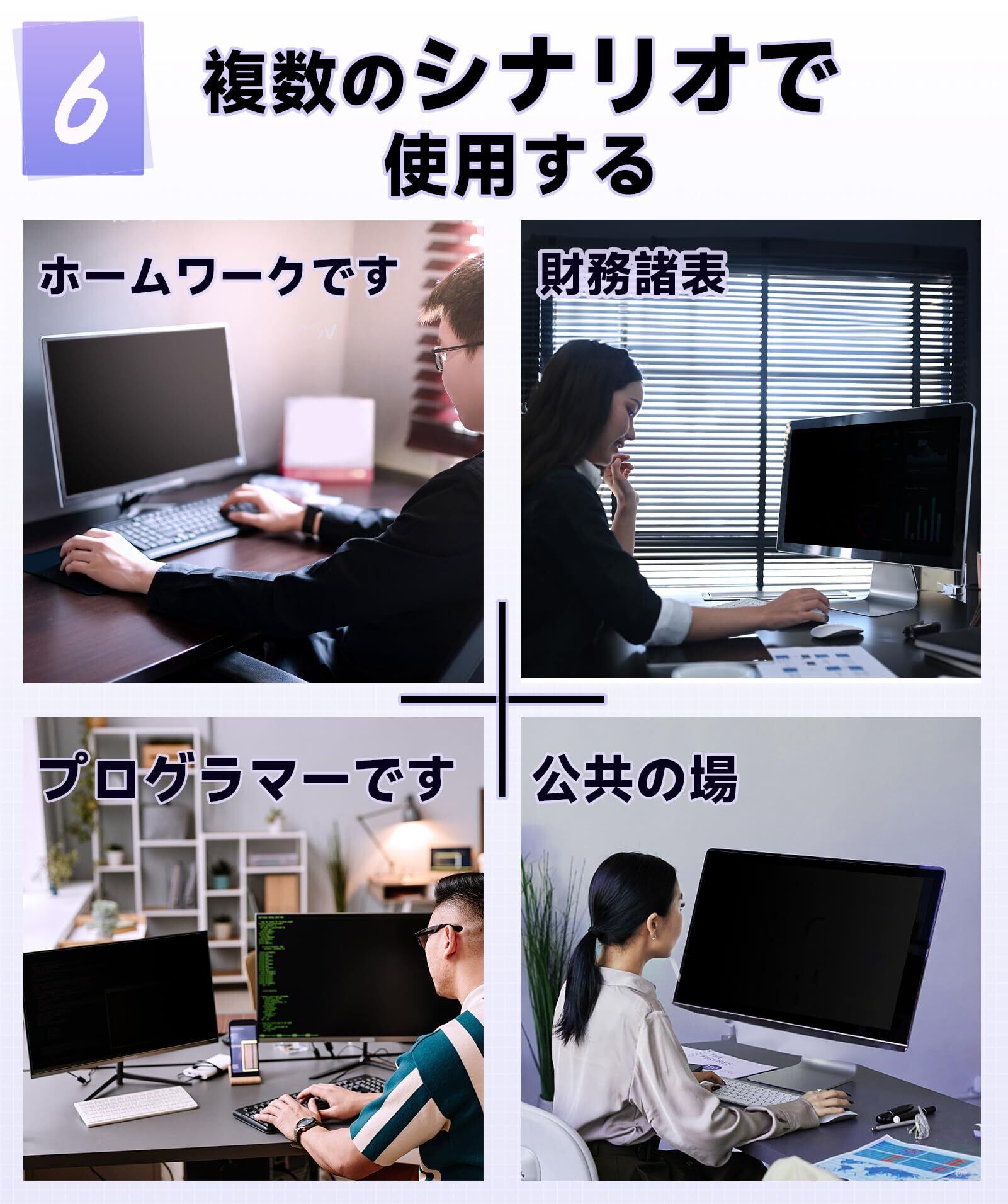 【取り付け簡単】 pc のぞき見防止フィルター 22インチには2つの独自に設計された取り付け方法があります:①永久取り付け:両面テープ。すべてのコンピュータで動作します。 ②取り外し可能な取り付けとスナップイン取り付け。盛り上がったベゼルを備えたコンピューター用。最適な方法を選択すると、覗き見防止フィルムパソコンを 20 秒でコンピュータ画面に完璧にフィットさせることができます。