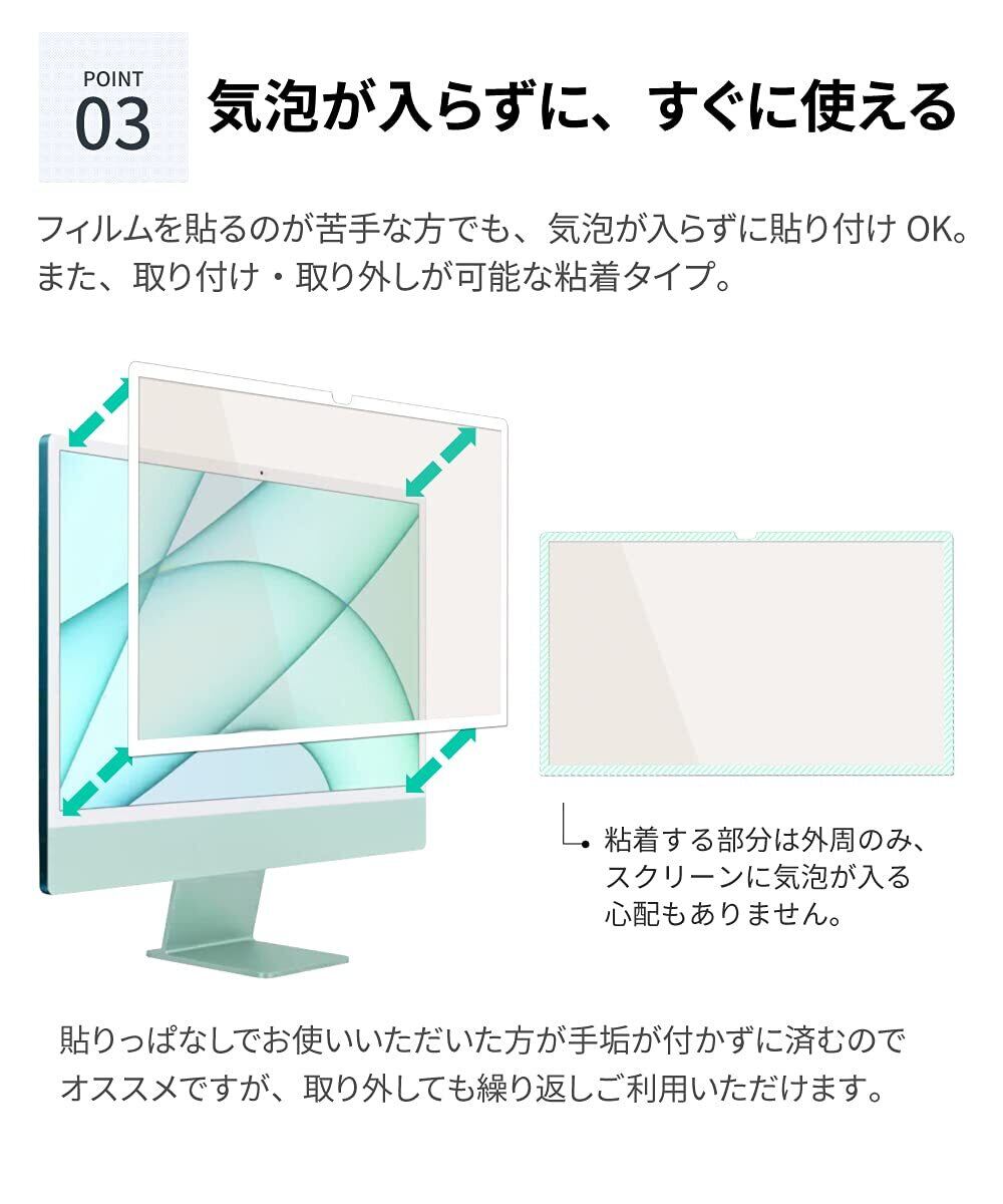 LOE(ロエ) iMac 24インチ 2021 ブルーライトカット 保護フィルム 枠粘着式 繰り返し 脱着可能 (アイマック 24 M1 2021年)