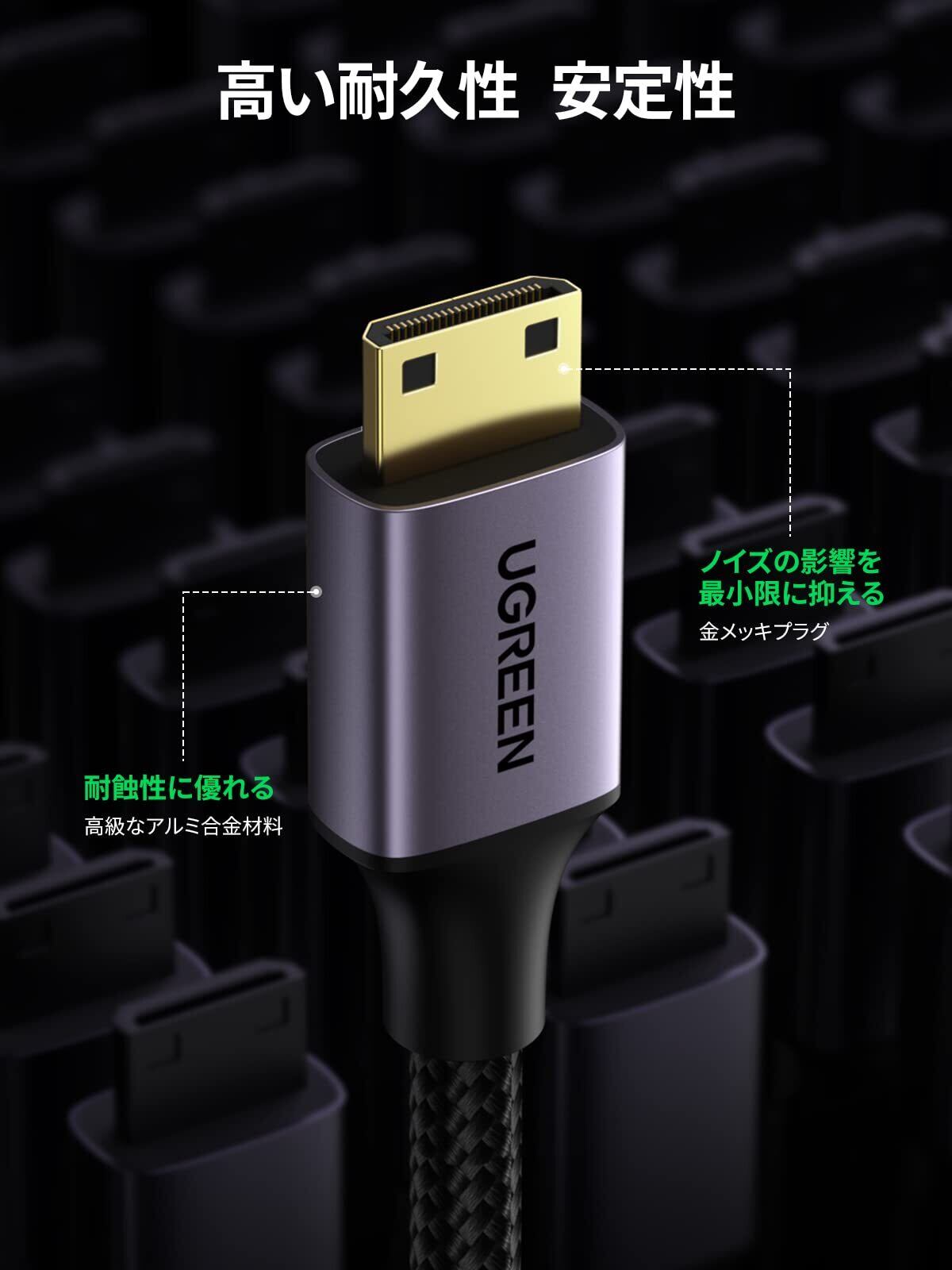 UGREEN Mini HDMI 変換 オスメス HDMI ミニHDMI 変換ケーブル (ミニHDMIタイプCオス - タイプAメス) HDMI 2.0 4K@60Hz ハイスピード ミニHDMI変換アダプタ グレー 25cm | グランメゾンショップ