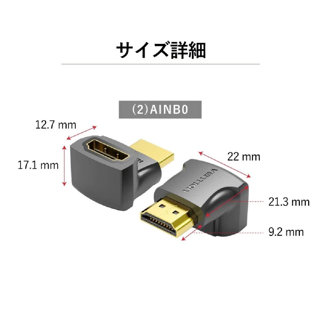 VENTION HDMI 270度 オス - メス 変換 アダプター L字 270度 4K/60Hz 3D オスメス スリム コネクタL型 直角 HDMI延長アダプタ 狭い場所対応 (HDMIアダプター1個入り/AINB0) | グランメゾンショップ