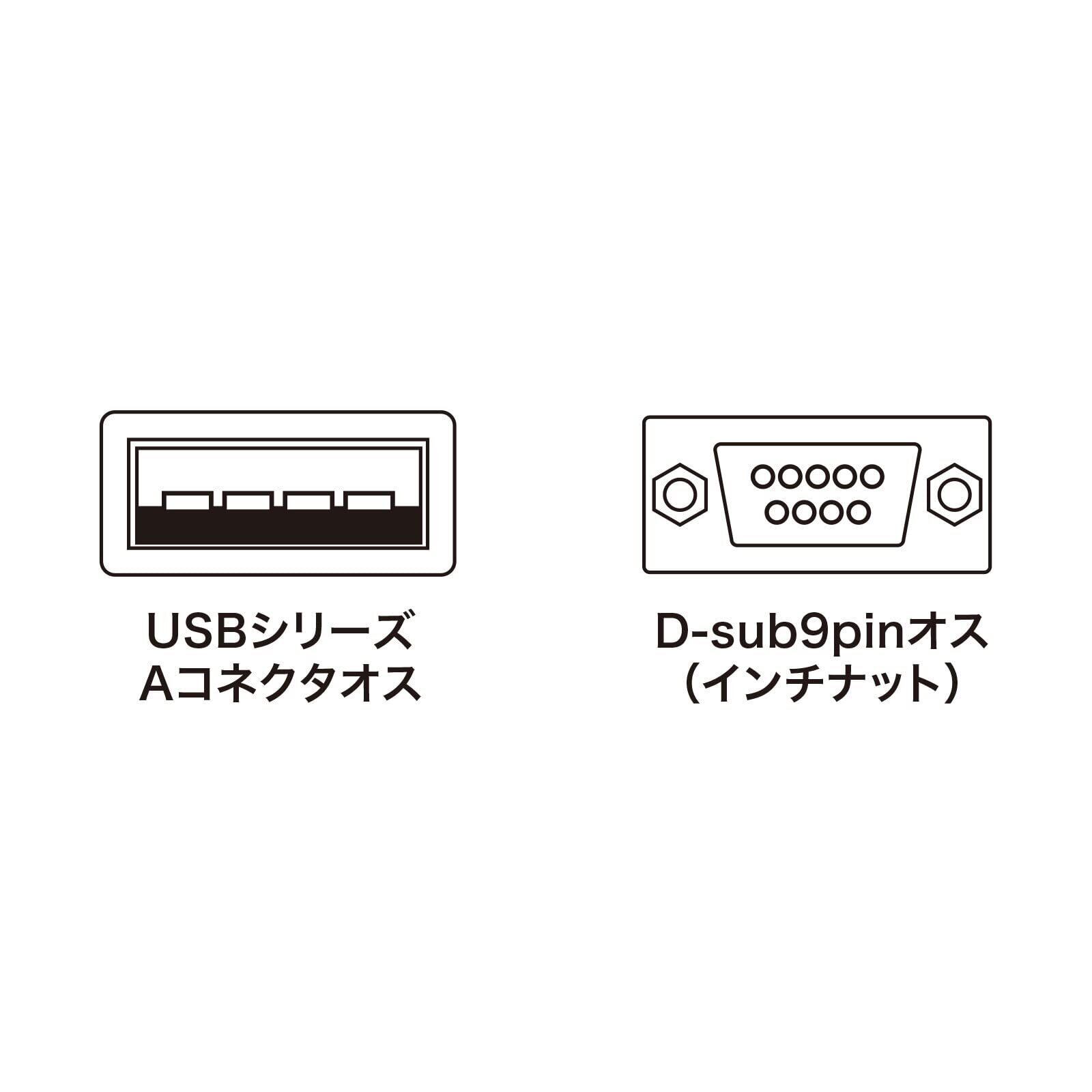 ■コネクタ形状:USB Aコネクタ オス-D-sub 9pinオス(インチナット)