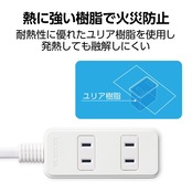 差込口には耐熱性に優れたユリア樹脂を使用しており、万一の発熱の際にも融解しにくく、電気火災の防止に有効です。