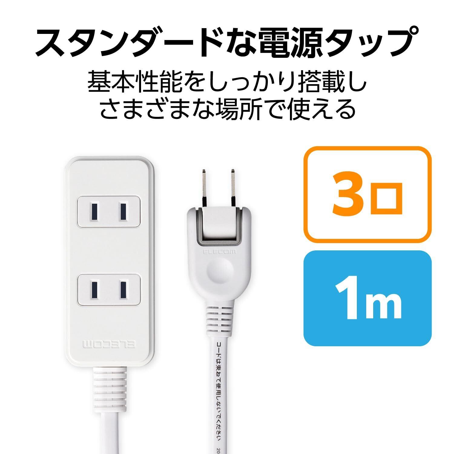 エレコム 電源タップ 配線しやすい180°スイングプラグ 3個口 1m ホワイト T-S02-2310WH
