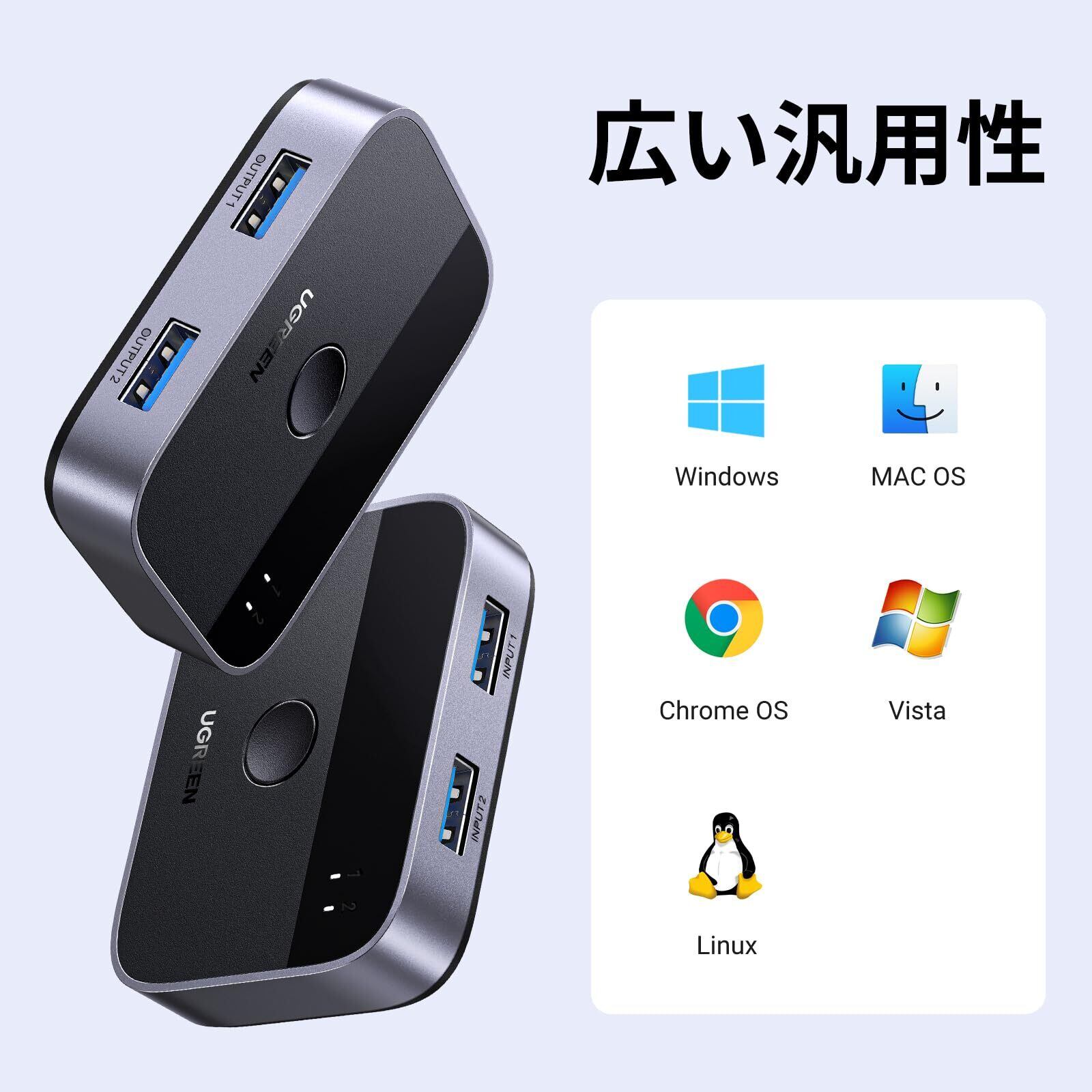 UGREEN USB3.0切替器 2入力2出力 USB切替機 2PCでキーボード/マウス/プリンタ/スキャナ/Webカメラなどを共有、2台のPC用プリンタ切替機、2*USBポート切り替え機 2本USBケーブル付き | グランメゾンショップ
