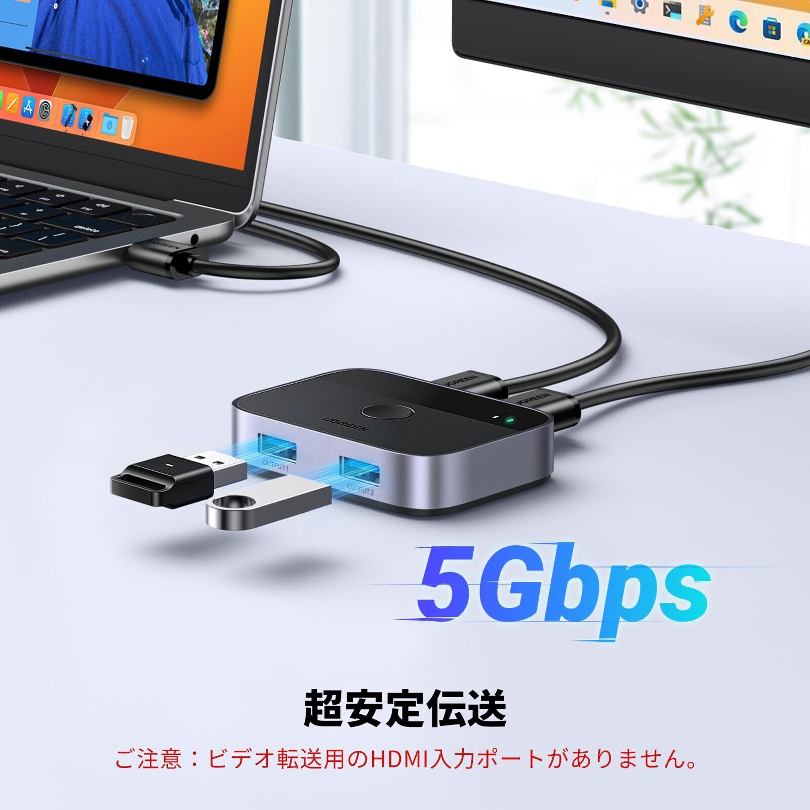 UGREEN USB3.0切替器 2入力2出力 USB切替機 2PCでキーボード/マウス/プリンタ/スキャナ/Webカメラなどを共有、2台のPC用プリンタ切替機、2*USBポート切り替え機 2本USBケーブル付き
