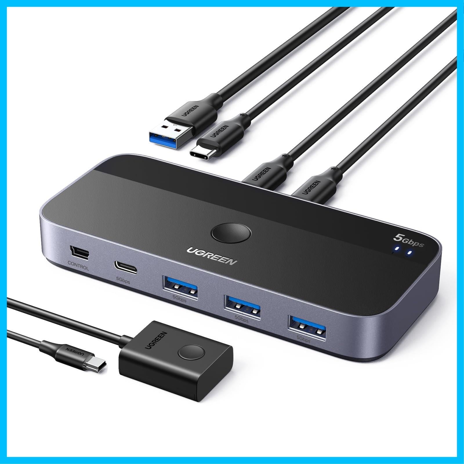 UGREEN USB3.0 切替器 2入力4出力 1USB-A&1USB-CPCでUSB-C&Aデバイス共有 5Gbps高速転送 USB 切り替え プリンタ/マウス/キーボード/ハブなどを切替 リモコン&切替ボタン 切り替え機 2*USBケーブル&リモコン付き スカイグレー | グランメゾンショップ