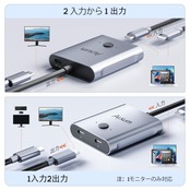 【2入力1出力/2入力1 USB C 切替器】 Alxum 2入力1出力/2入力1出力USB Cスイッチを使用すると、2つのUSB-Cビデオソース間で1つのディスプレイを簡単に共有したり、1つのソースを2つのディスプレイ間で共有したりできます。ノートパソコン、タブレット、スマートフォン、ゲーム機、その他のフル機能のUSB Cデバイスなどに対応しています。注意:2つのディスプレイは同時に表示できません。ご注意: Thunderbolt(雷電)周辺機器のデータ伝送はサポートされていません。Thunderbolt対応のドッキングステーションまたはThunderboltハードディスクケースはサポートされていません。