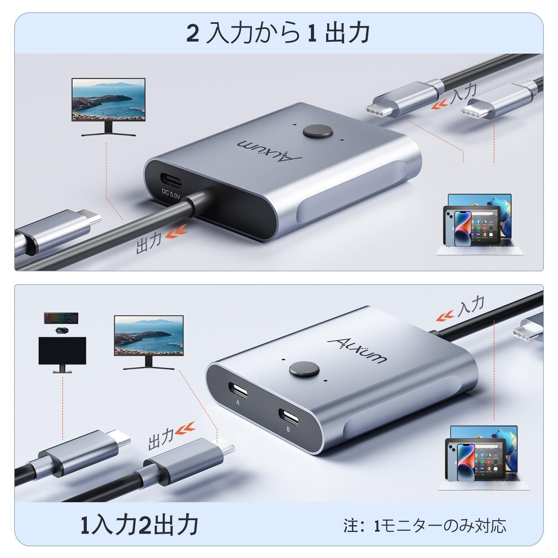 Alxum USB C 切替器 - USB 切り替え Type C 2入力1出力/1入力2出力、パソコン2台モニター1台切り替え対応 8K@60Hz 映像出力と10Gbps データ転送をサポート、USB Cケーブル付属 | グランメゾンショップ