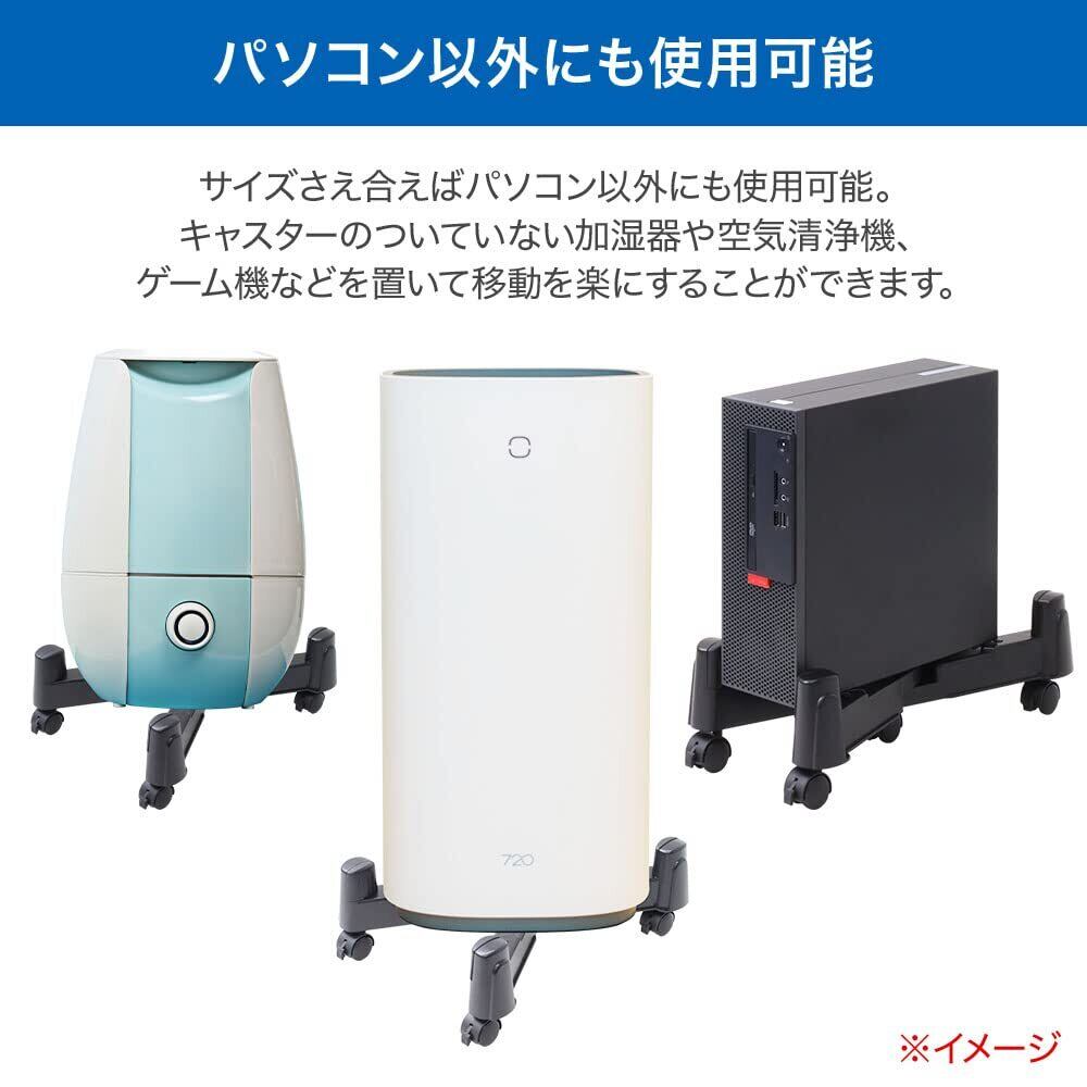 CPUの幅に合わせて段階的に内寸4~23cmでの調節が可能。サイズさえ合えばパソコン以外にもキャスターのついていない加湿器や空気清浄機、ゲーム機などを置いて移動を楽にすることができます。
