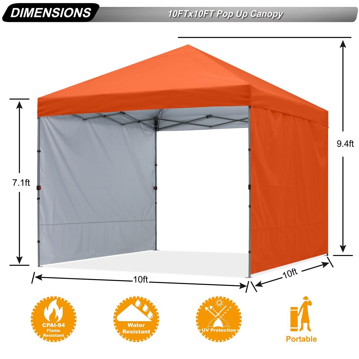 ABCCANOPY ポップアップキャノピーテント 2つのサイドウォール付き 屋外の日よけや雨からの保護 10x10 オレンジ