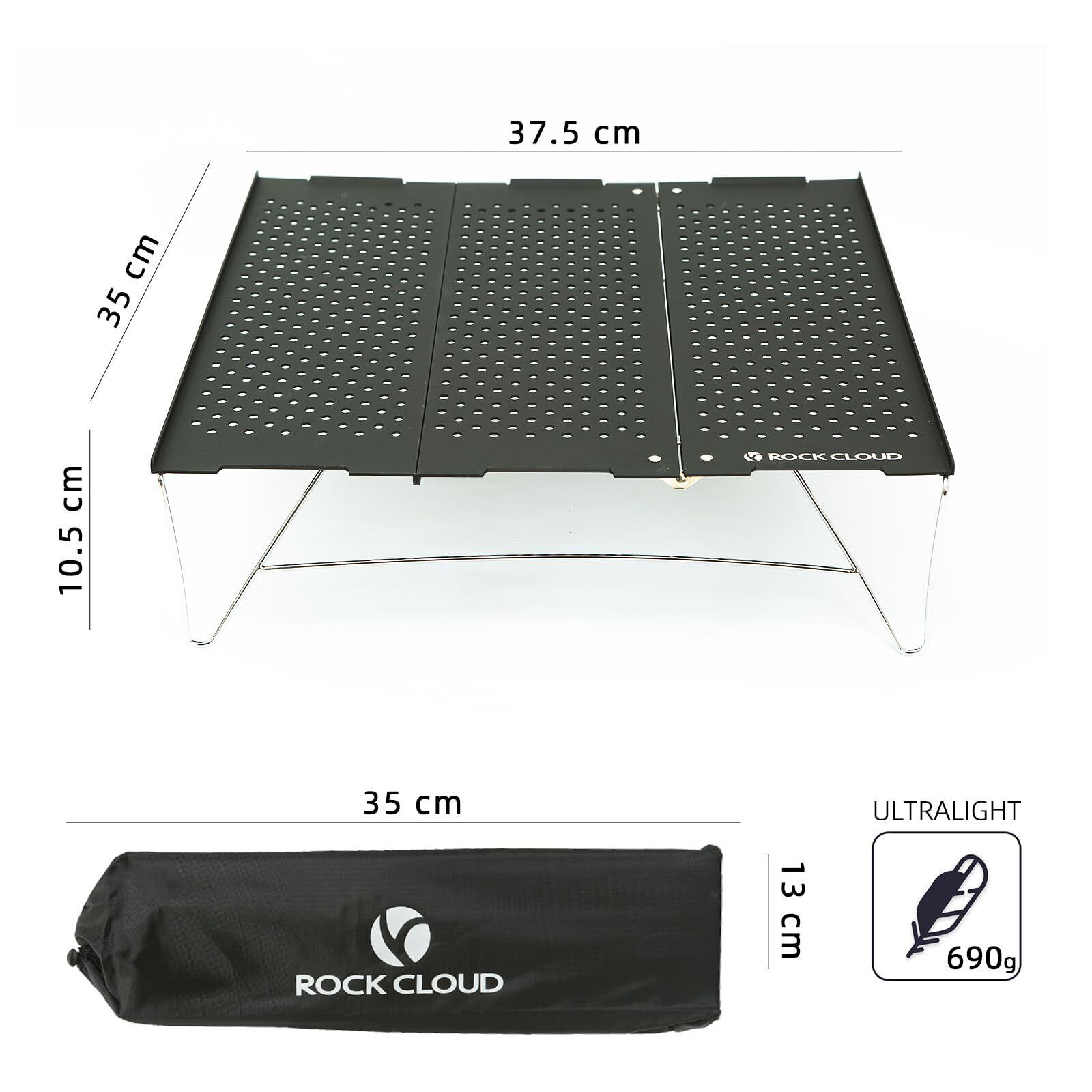 ROCK CLOUD キャンプ テーブル リンク付き 組立簡単 超軽量 アウトドア ローテーブル 耐荷重15kg 折りたたみ コンパクト ソロキャンプ バックパッカー ハイキング bbq 登山 ツーリング 収納袋付き (Black-L)